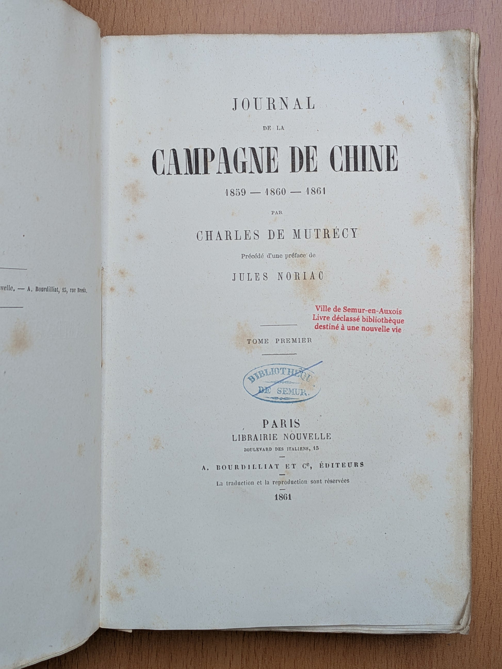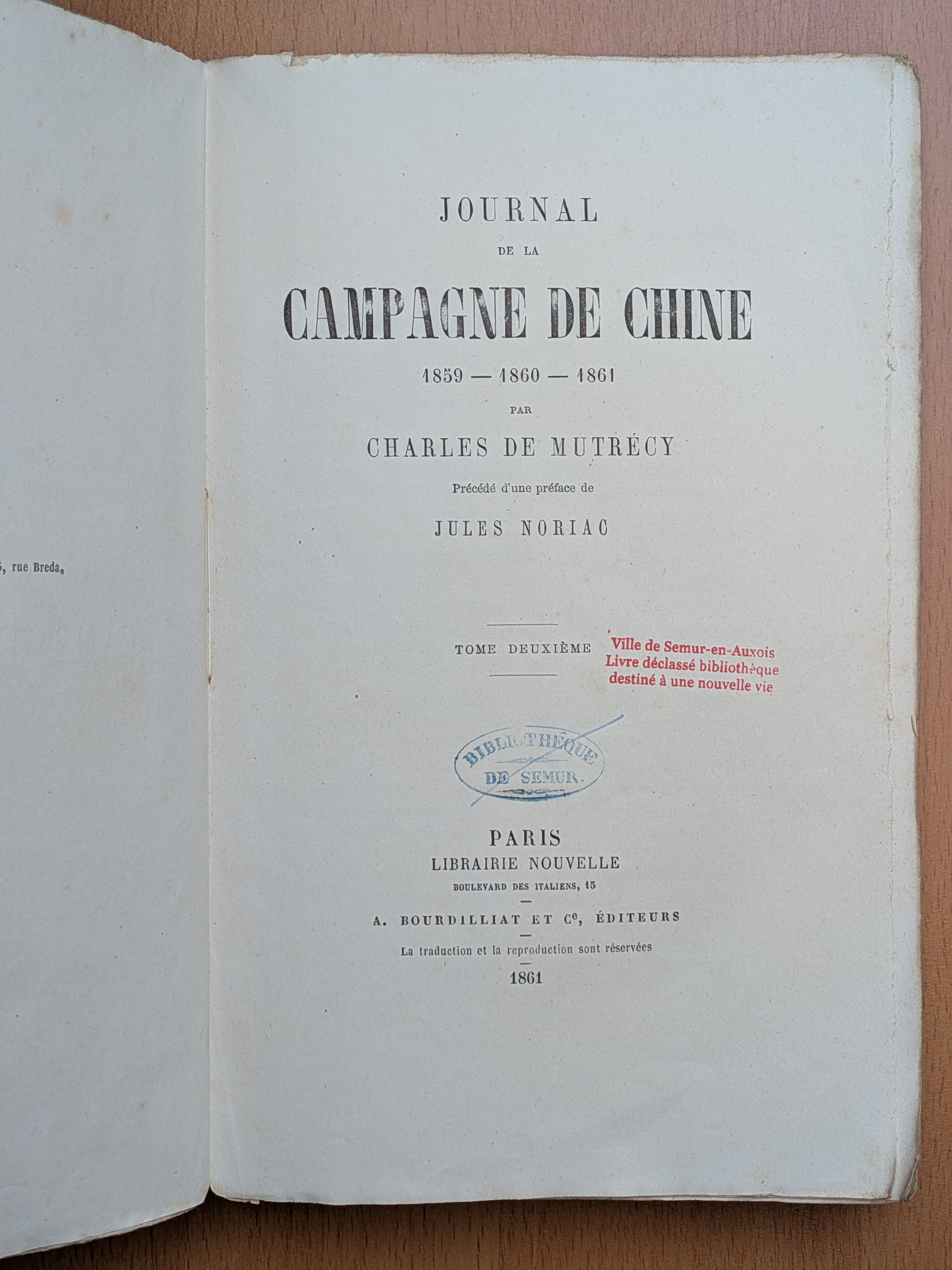 Journal de la Campagne de Chine - 1859-1860-1861 - Charles de Mutrecy - Edition originale - 1861