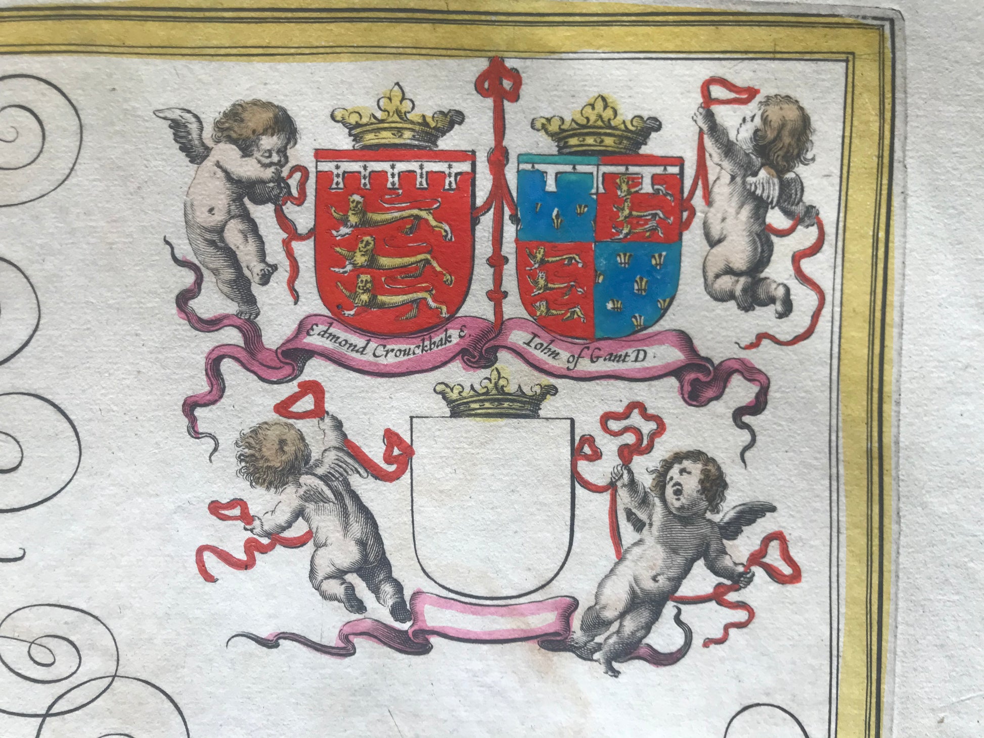 3 cartouches de titre, échelle, blasons et armes