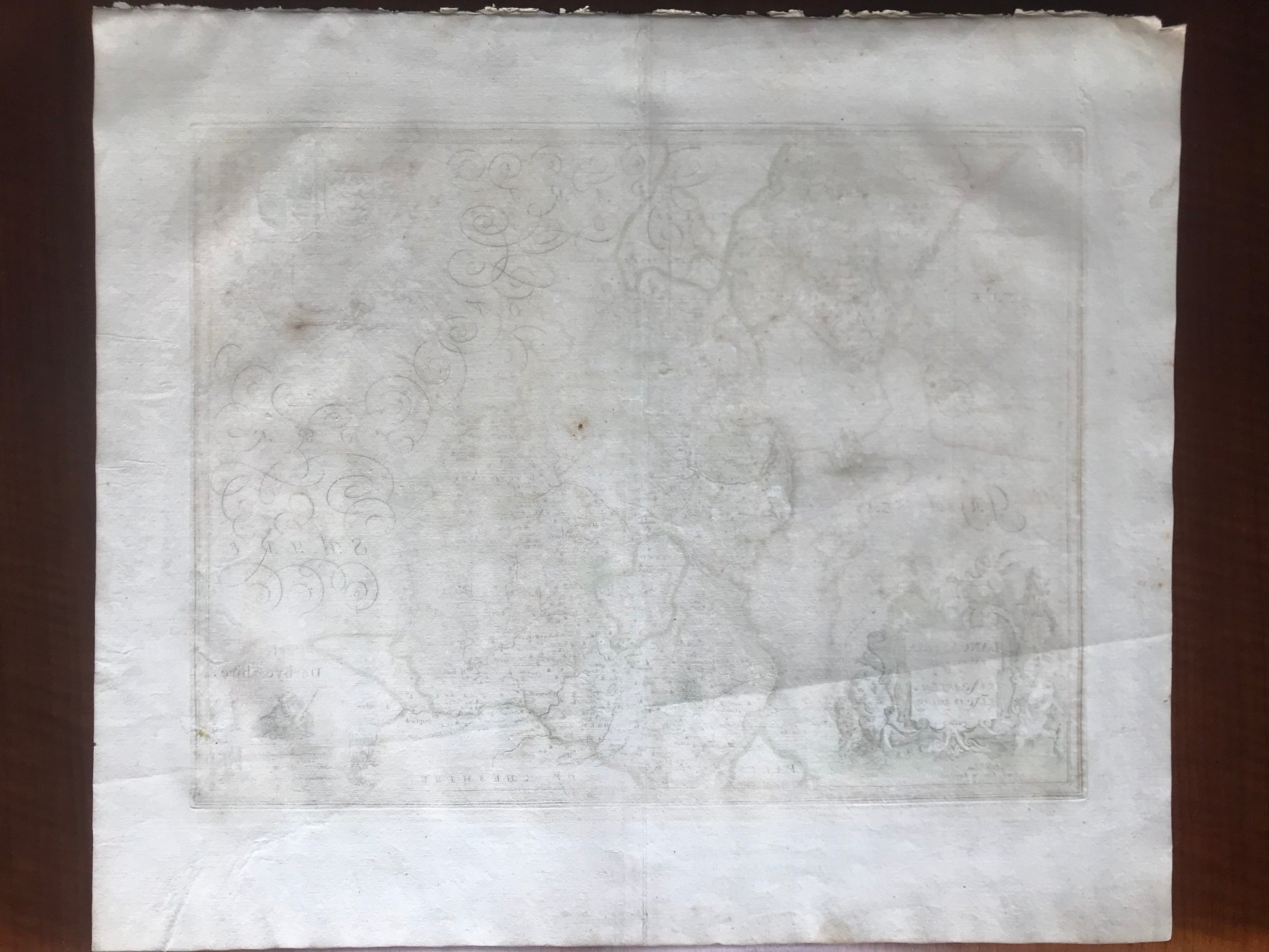 Grande carte gravée sur papier vergé et coloriée à la main