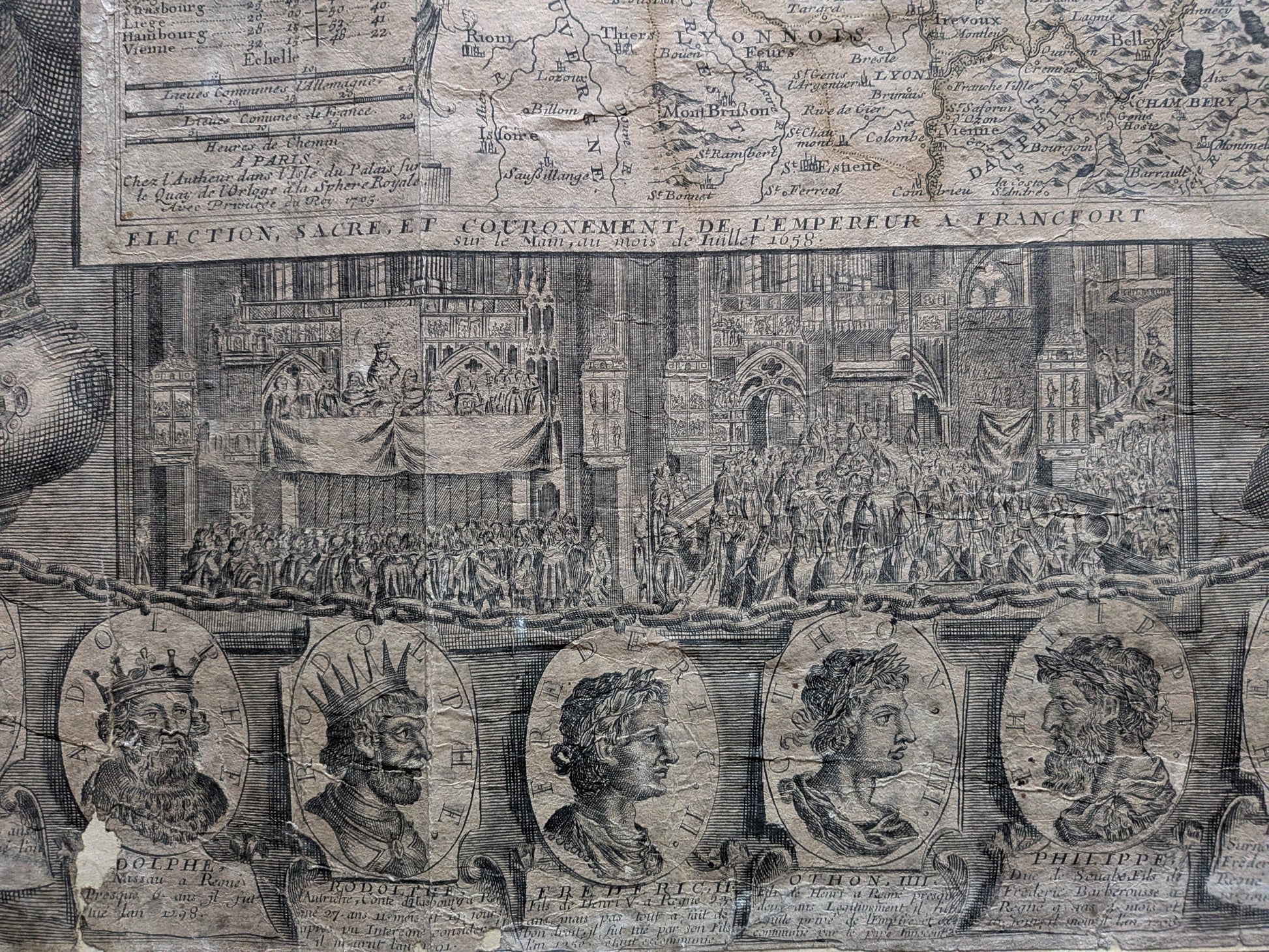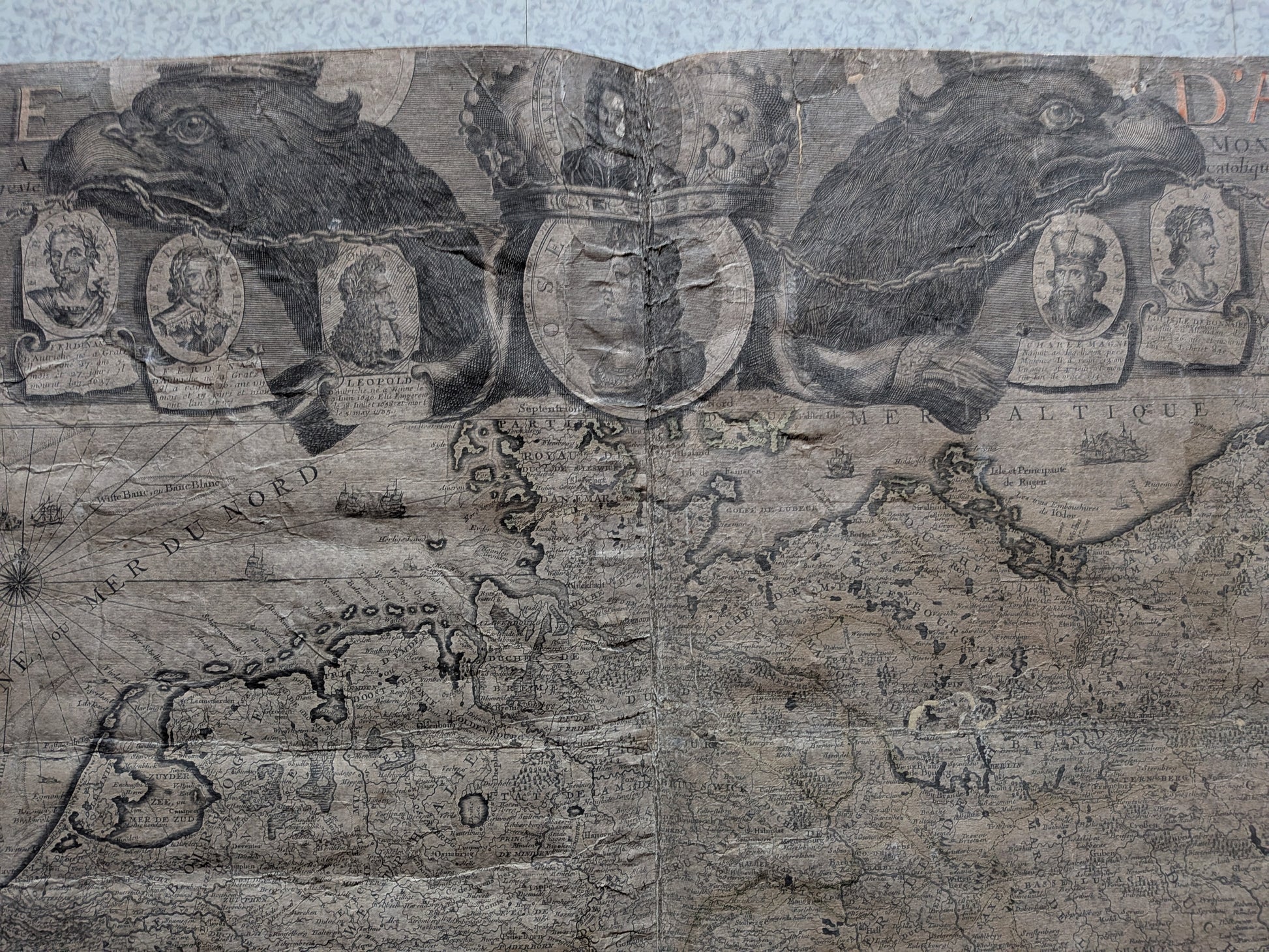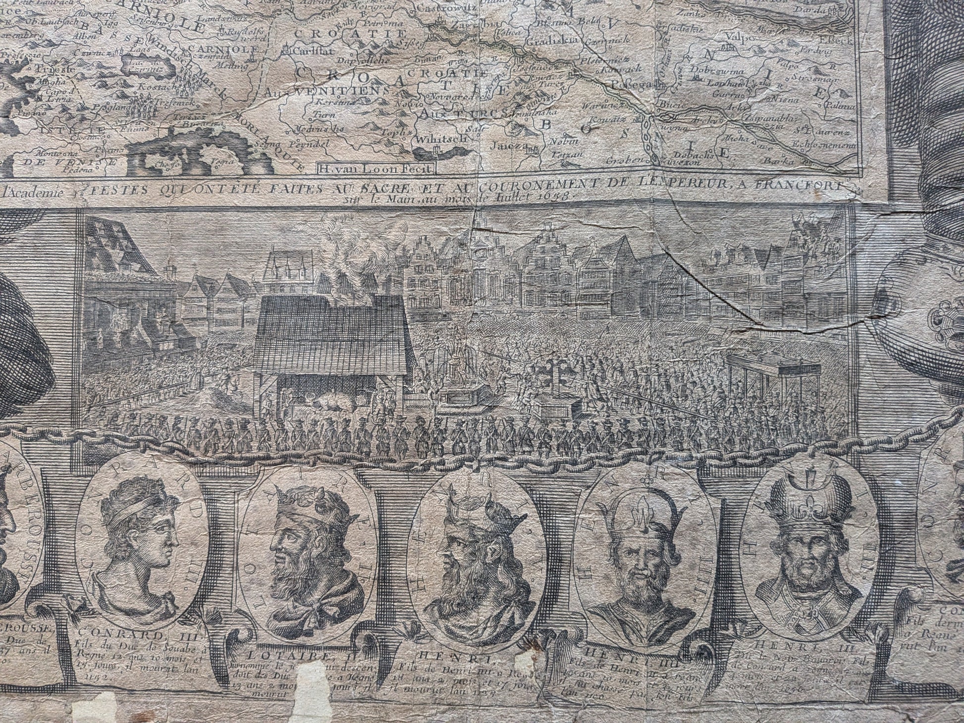 Carte contrecollé sur grand papier de l'époque représentant le Saint-Empire romain germanique en 1710