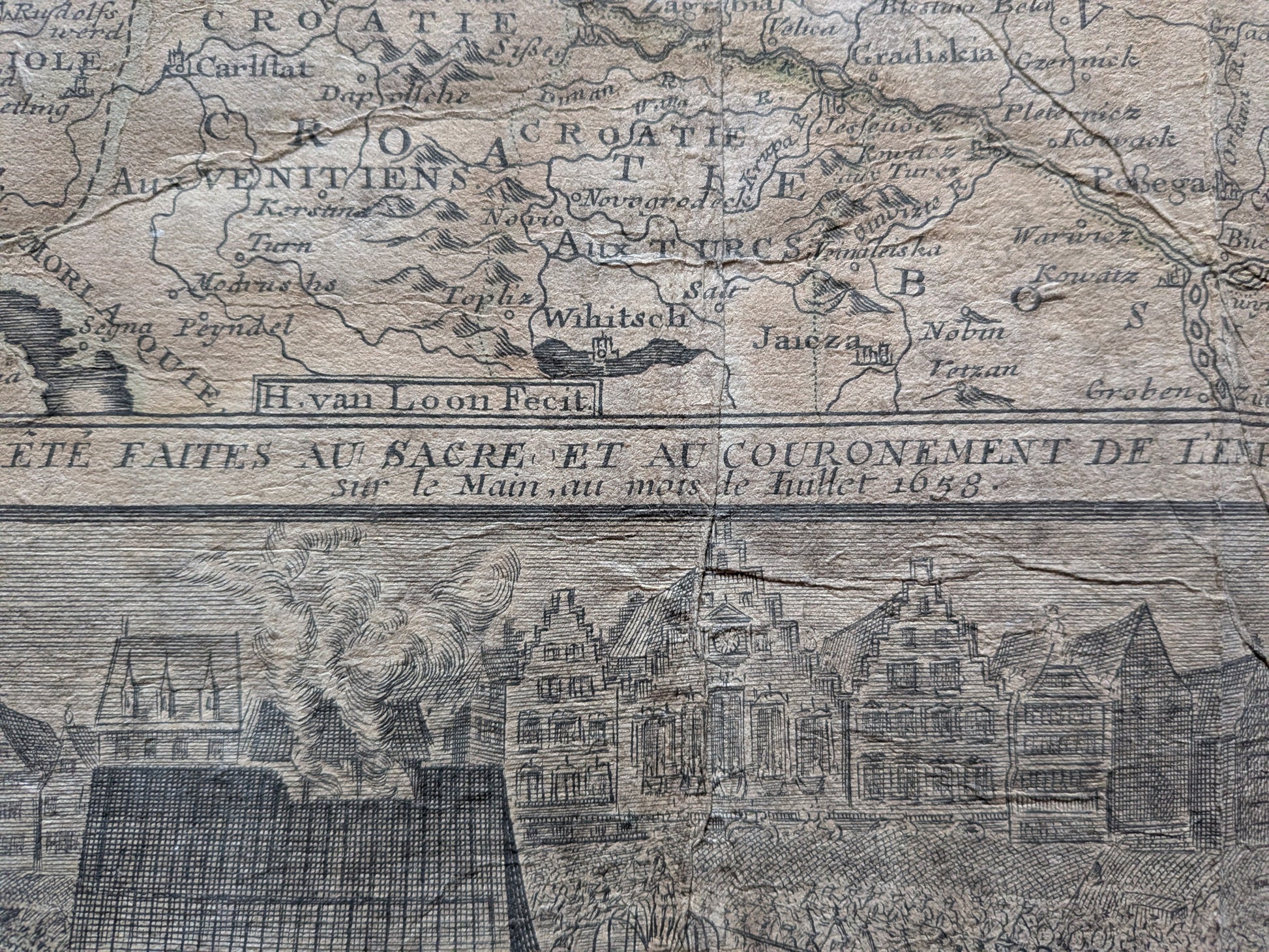 Deux scènes représentent l'élection, le sacre et le couronnement de l'Empereur à Francfort en 1658