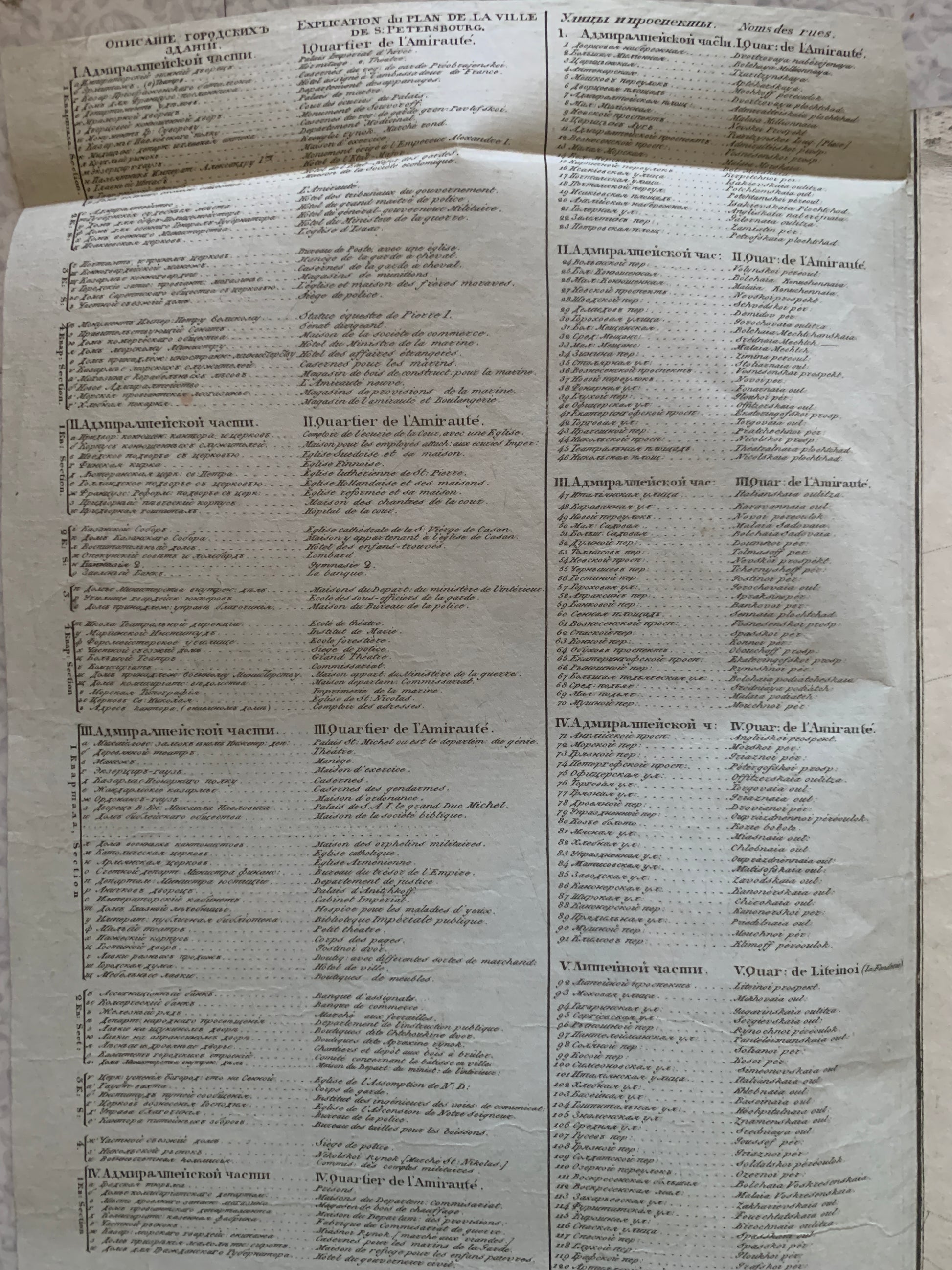 Plan sur papier vergé filigrané avec explication du plan en français et en russe en regard