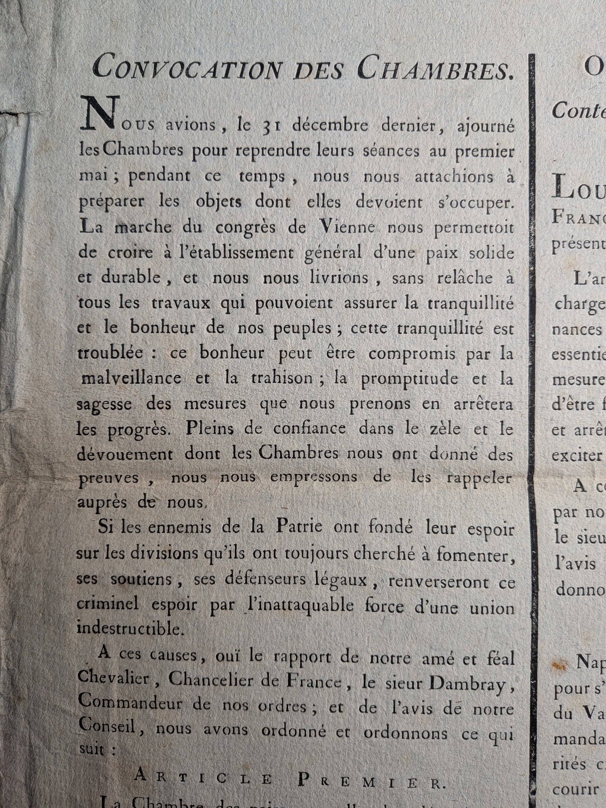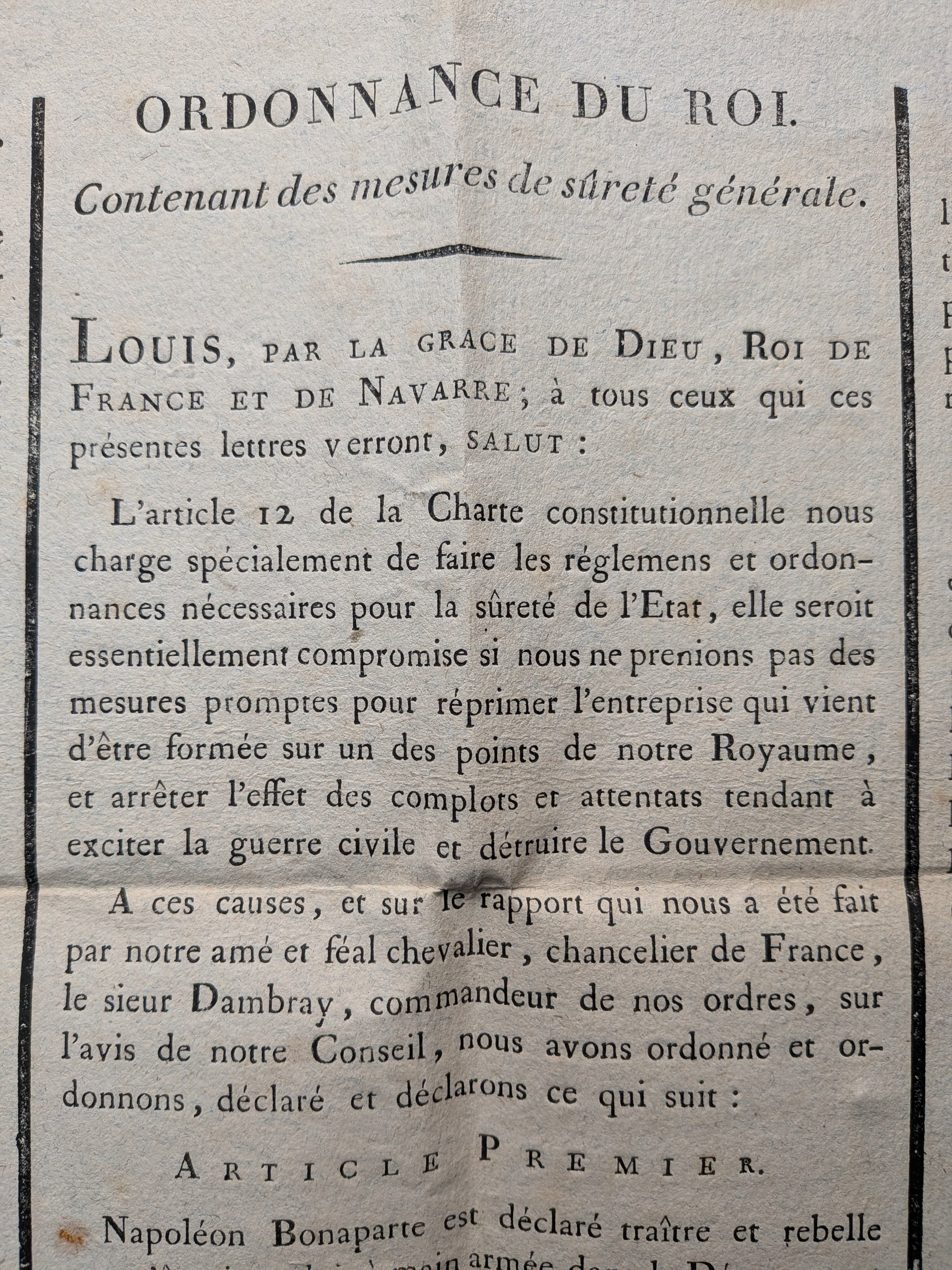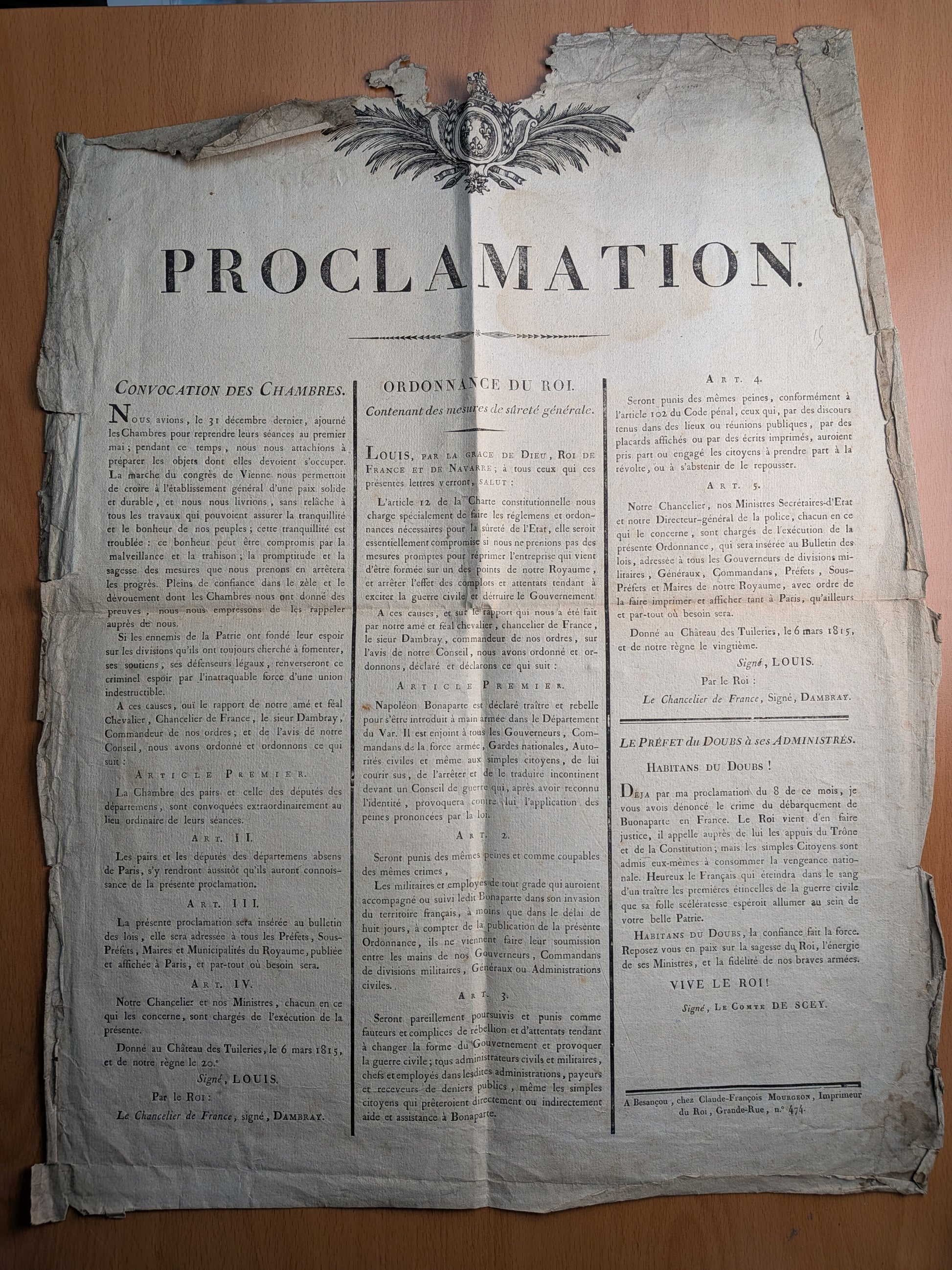 Proclamation de Louis XVIII contre Napoléon Bonaparte
