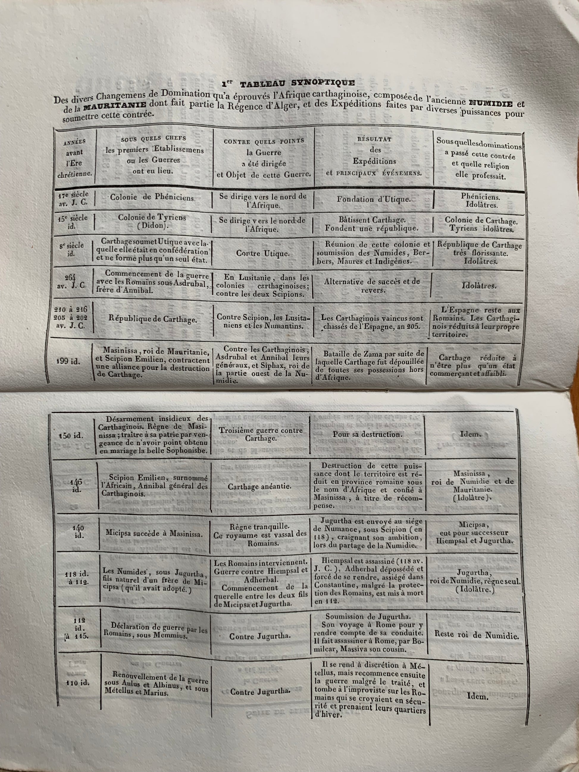 - Premier tableau synoptique des divers changement de domination qu'à éprouvés l'Afrique carthaginoise, etc, etc