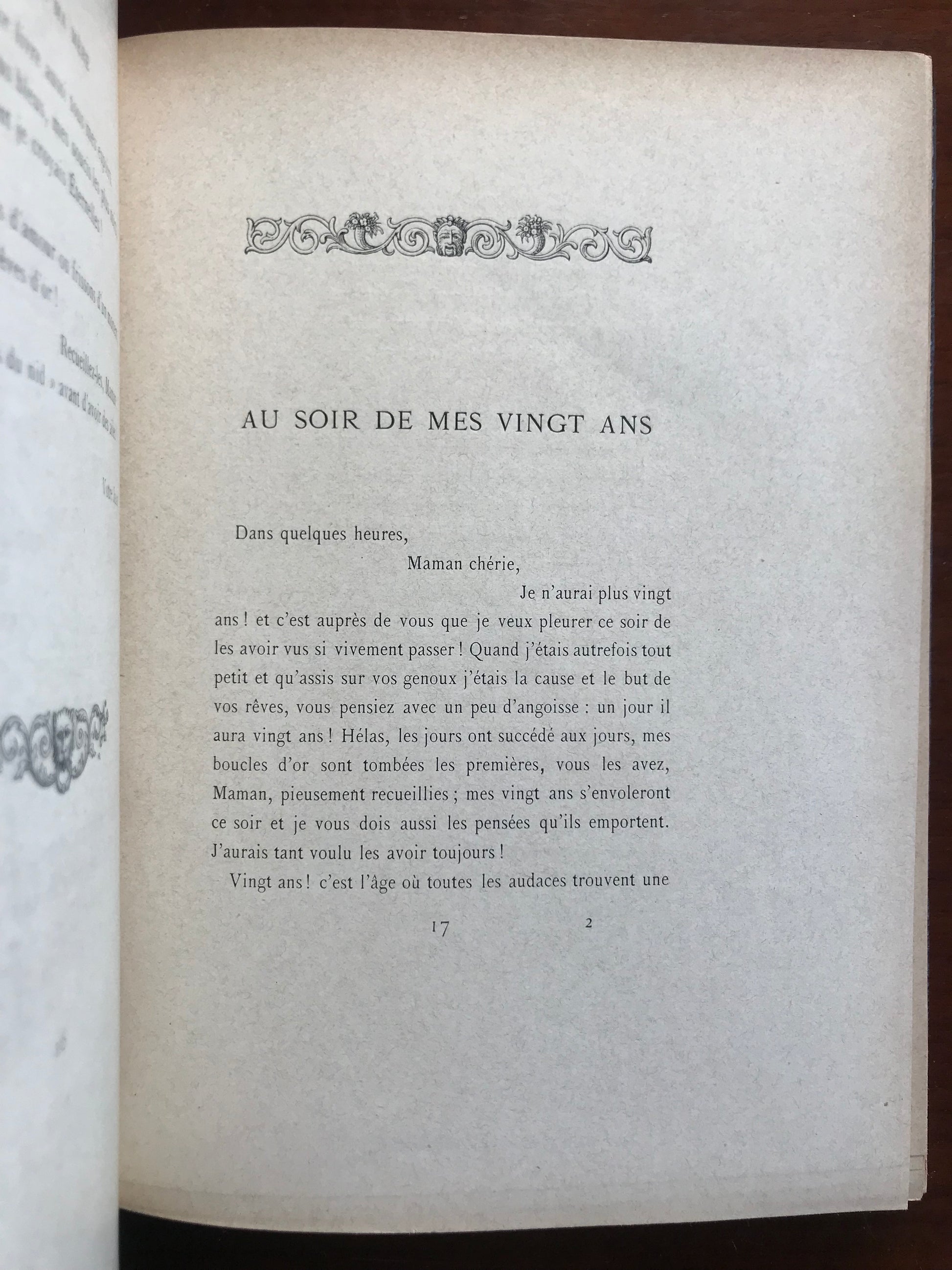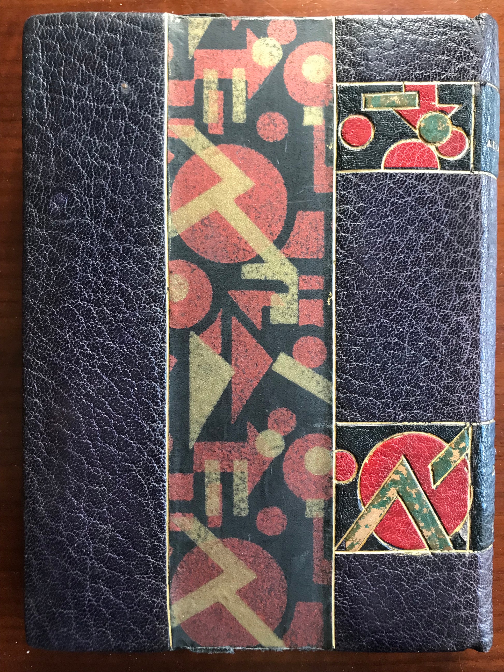 Ouvrage relié, reliure maroquin mosaïquée, titre doré et tranche supérieure dorée