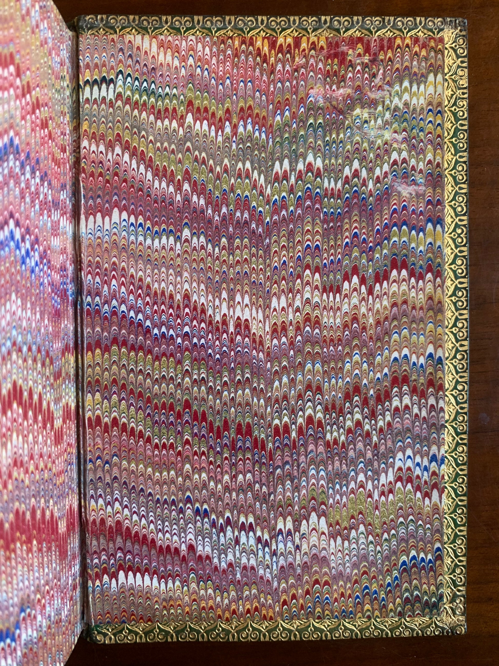 Ouvrage relié plein maroquin, triple filets gaufrés et triple filets dorés d'encadrements et fleurons dorés sur les plats.