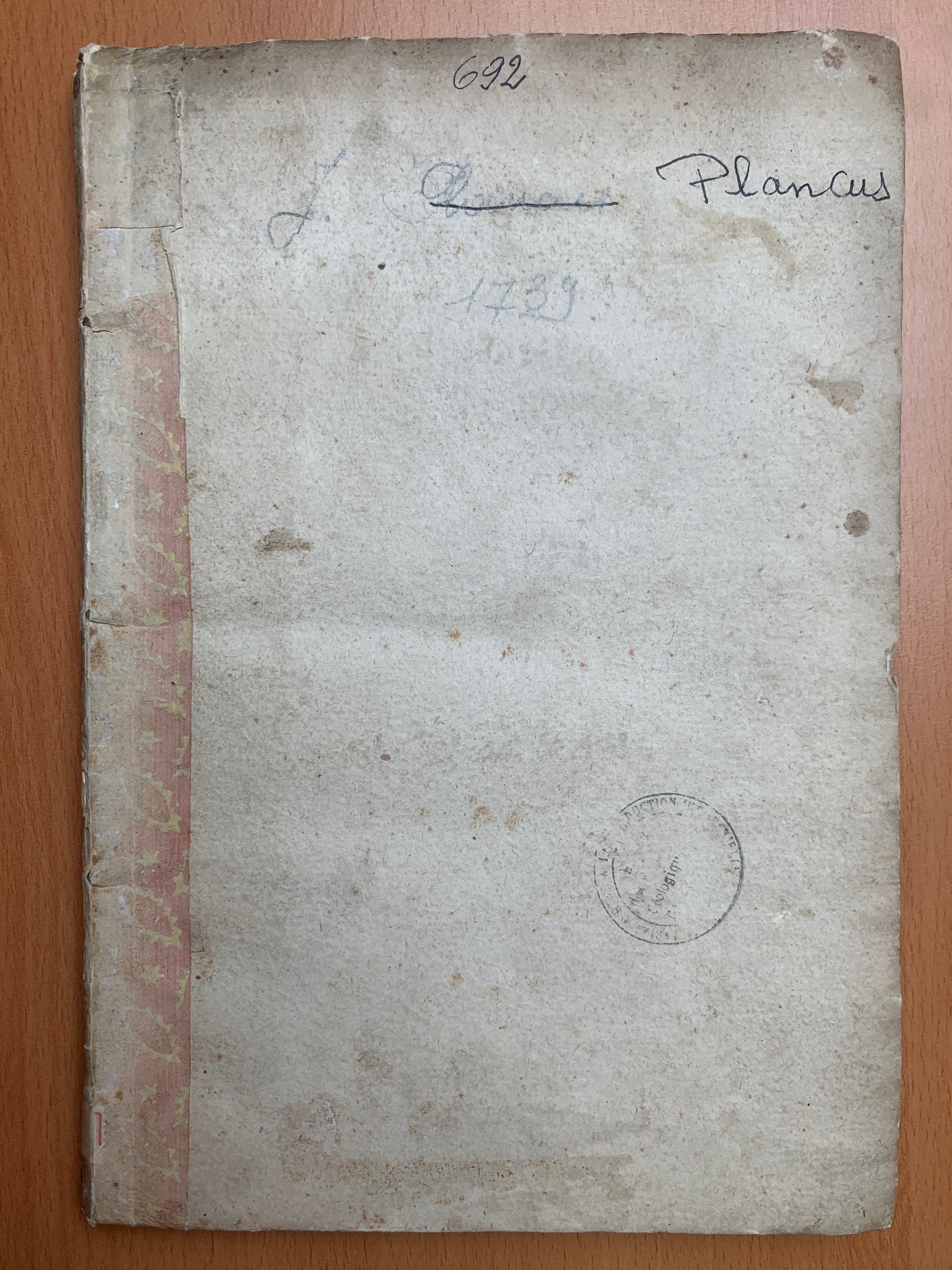 Ouvrage broché sous couverture d'attente, pièce de titre et titre manuscrit