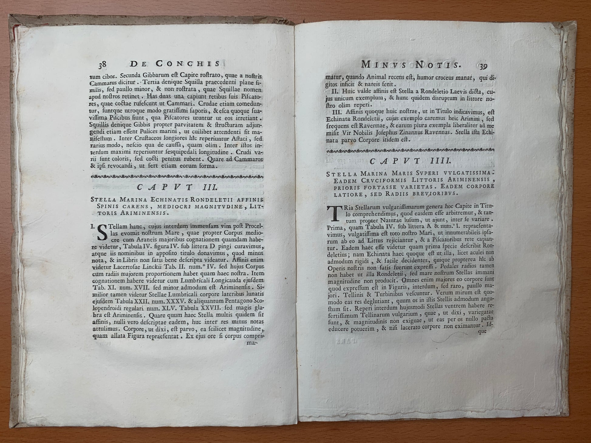De conchis minus notis liber Cui accessit specimen aestus reciproci maris superi ad littus portumque Arimini - Janus Plancus - Edition originale - 1739
