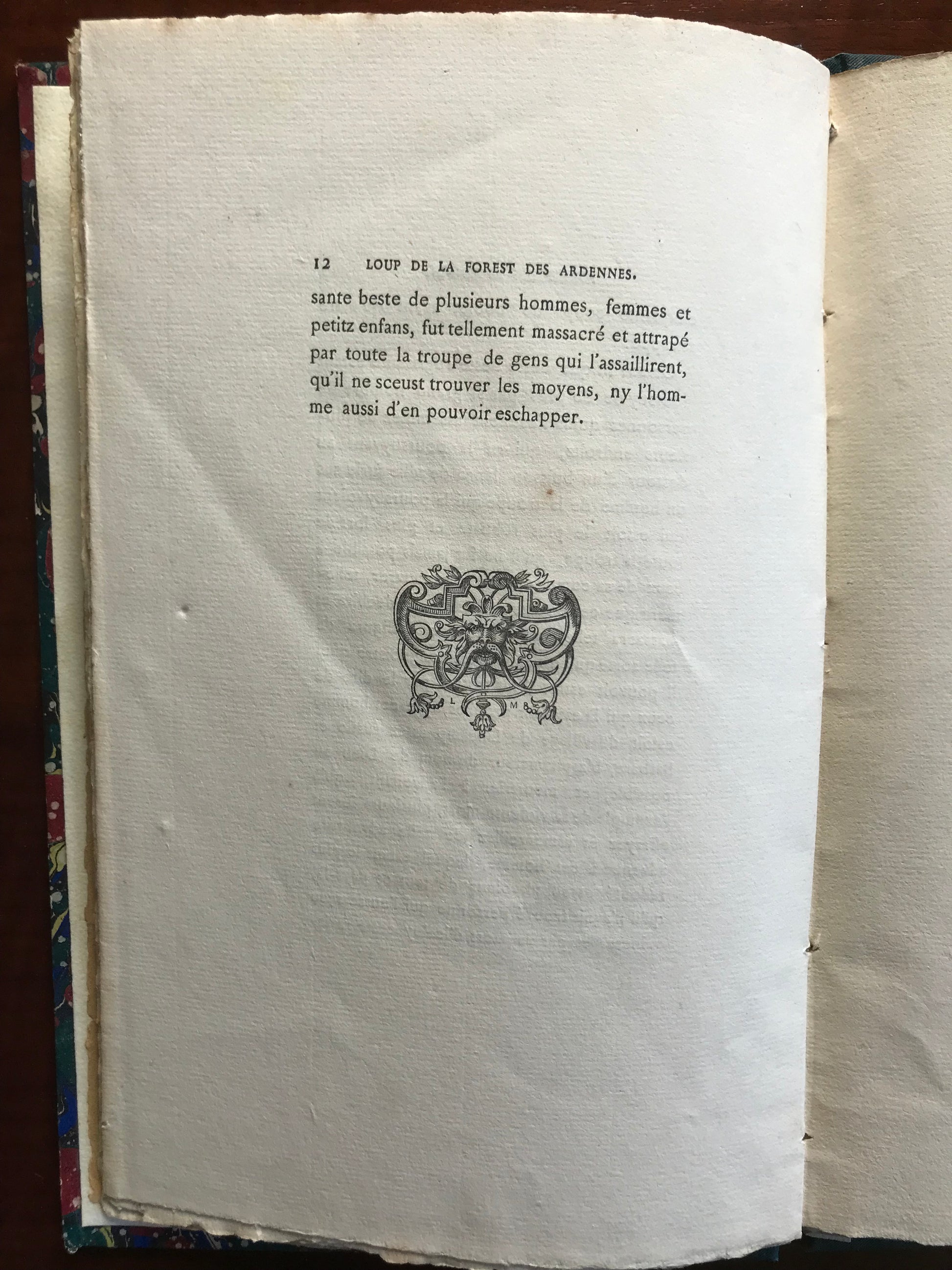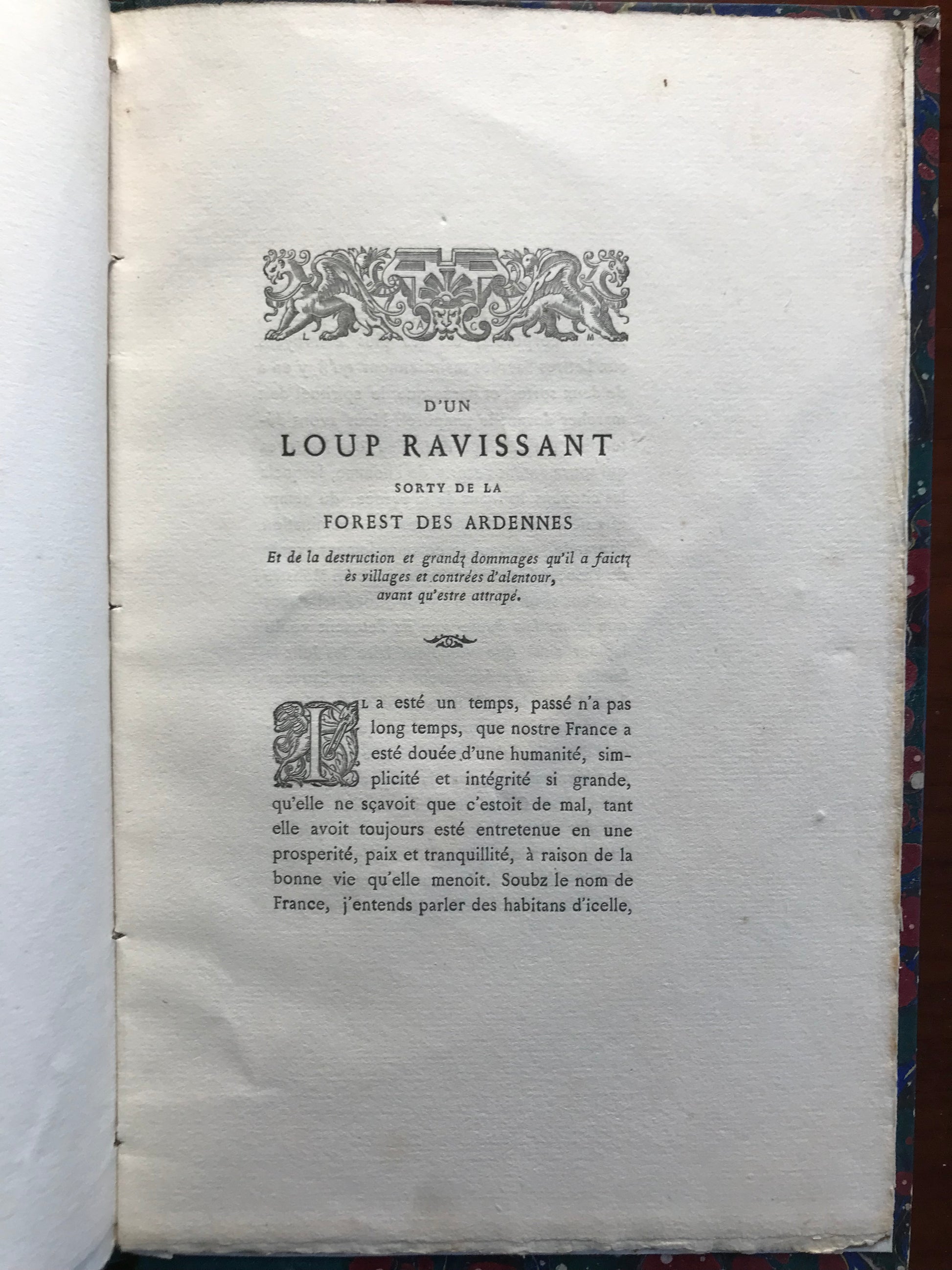 Figure d'un Loup ravissant trouvé en la Forest des Ardennes Et de la destruction par luy faicte en plusieurs bourgs, villages et dépendance d'icelle Forest. Au mois de décembre dernier passé. - 1876