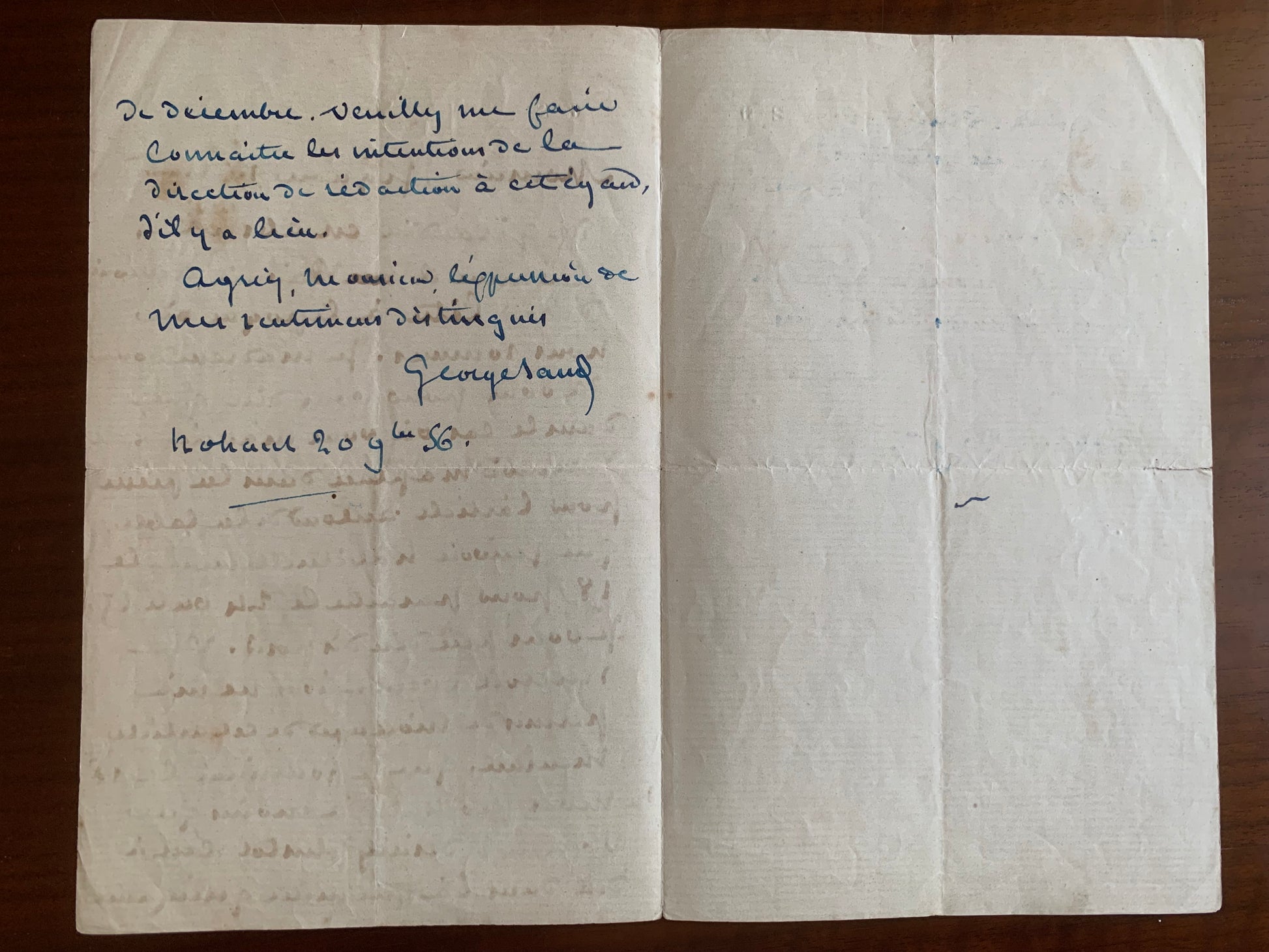 George Sand - Autour de la Table - Lettre manuscrite signée - 1856