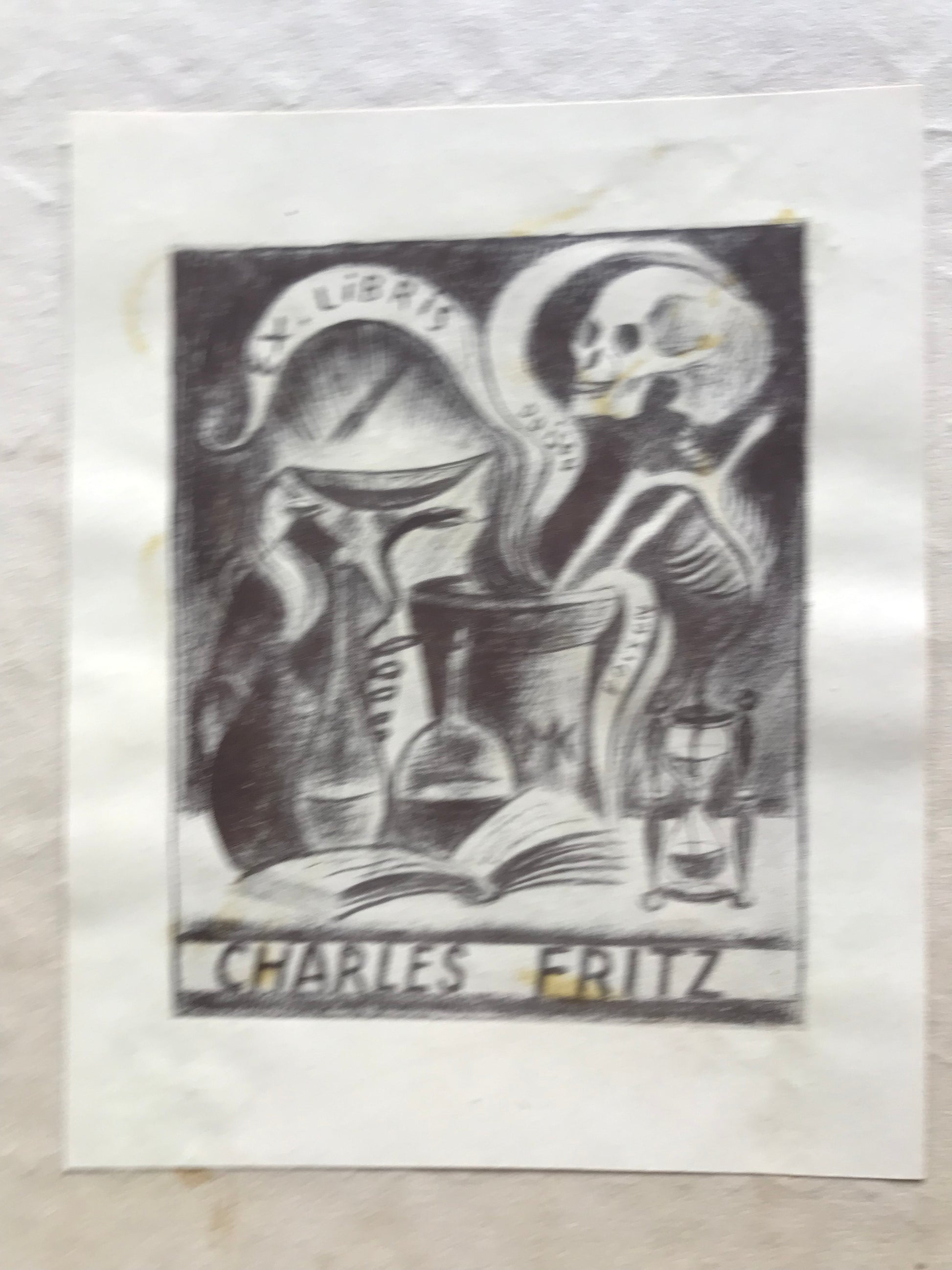 Ex-libris de Charles Fritz contrecollé sur le contreplat