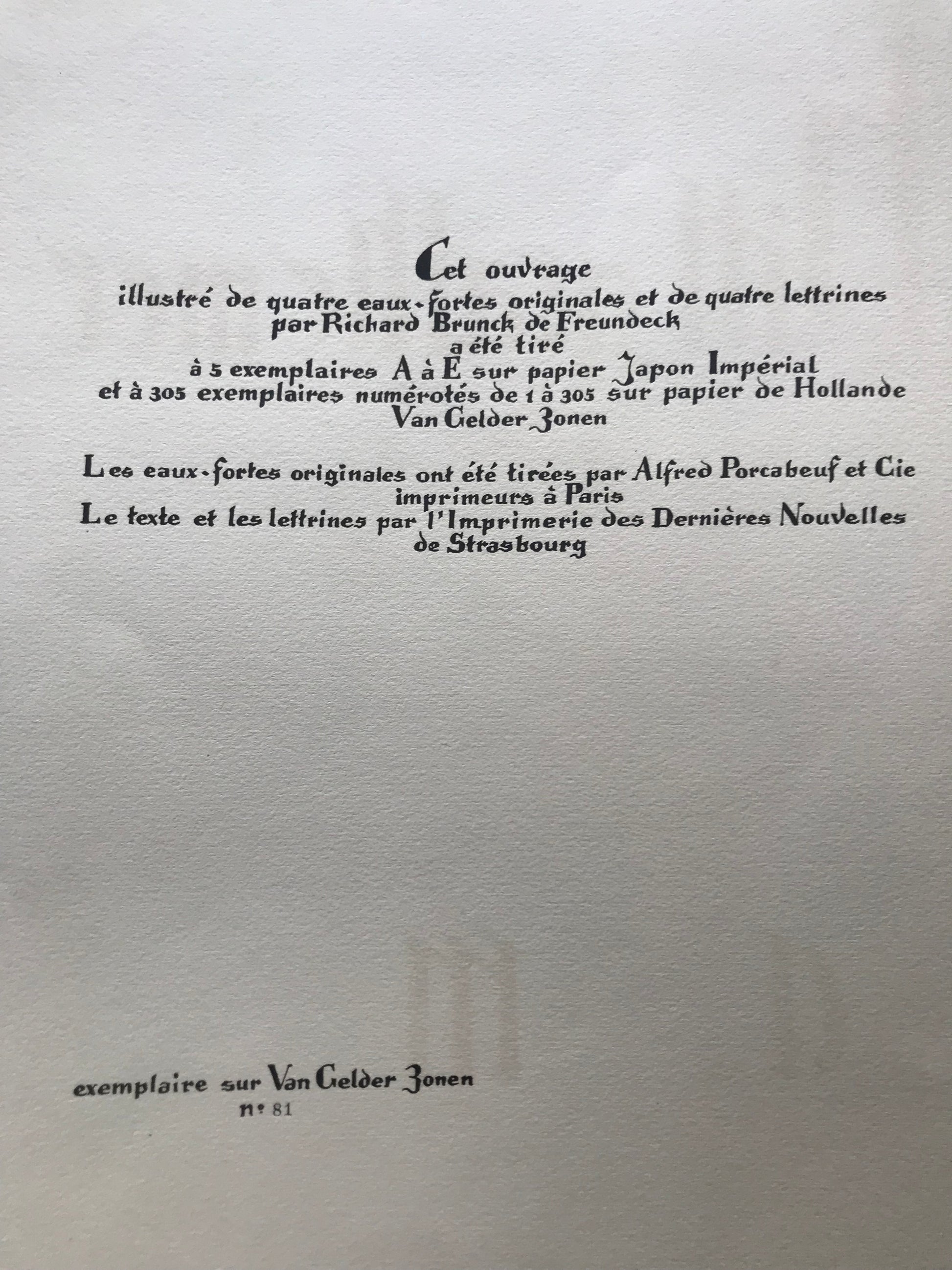 Ouvrage illustré de 4 eaux-fortes originales et de 4 lettrines par Richard Brunck de Freundeck