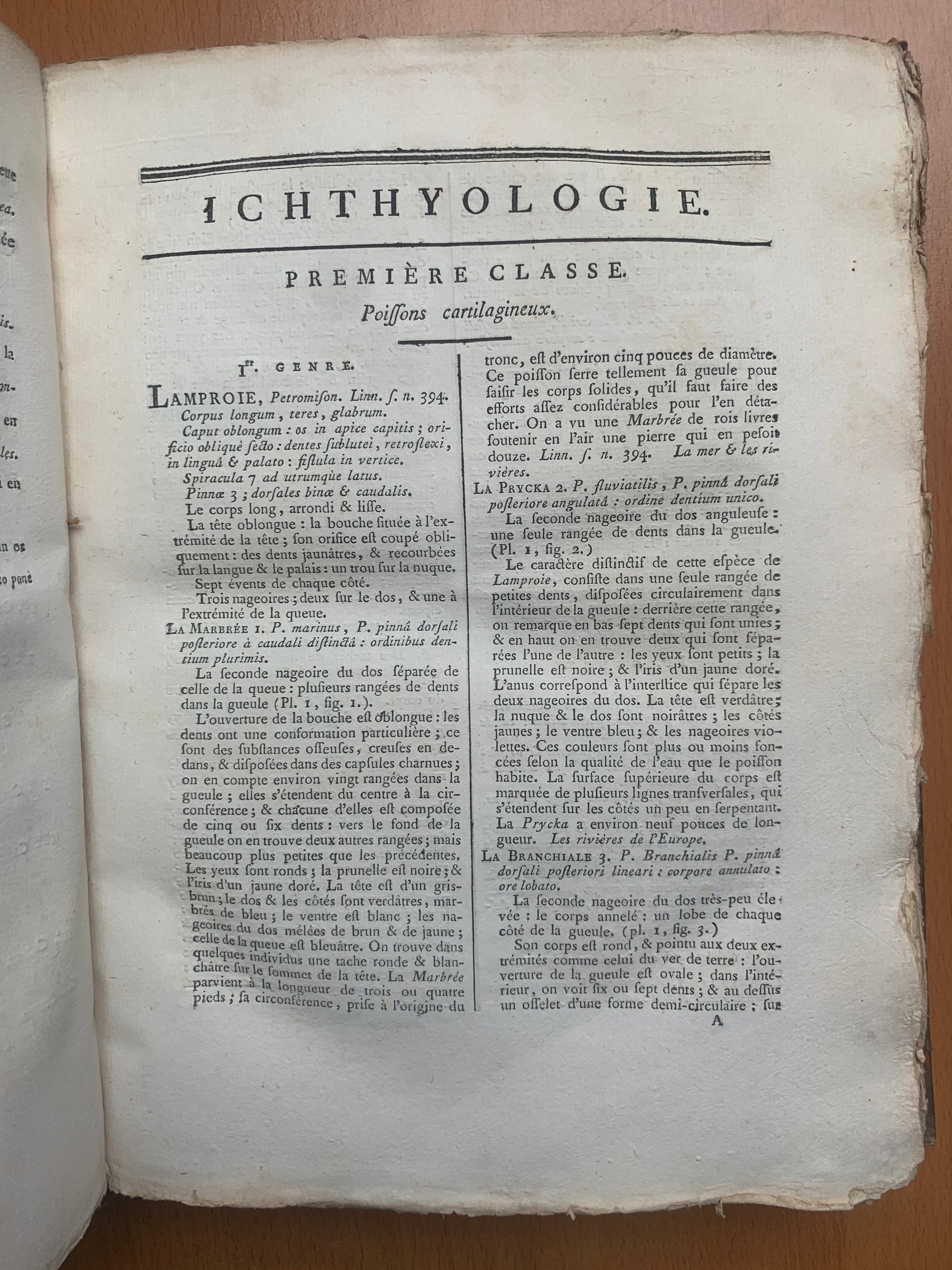 Ichthyologie - Poissons - Tableau encyclopédique - Abbé Bonnaterre - 1788