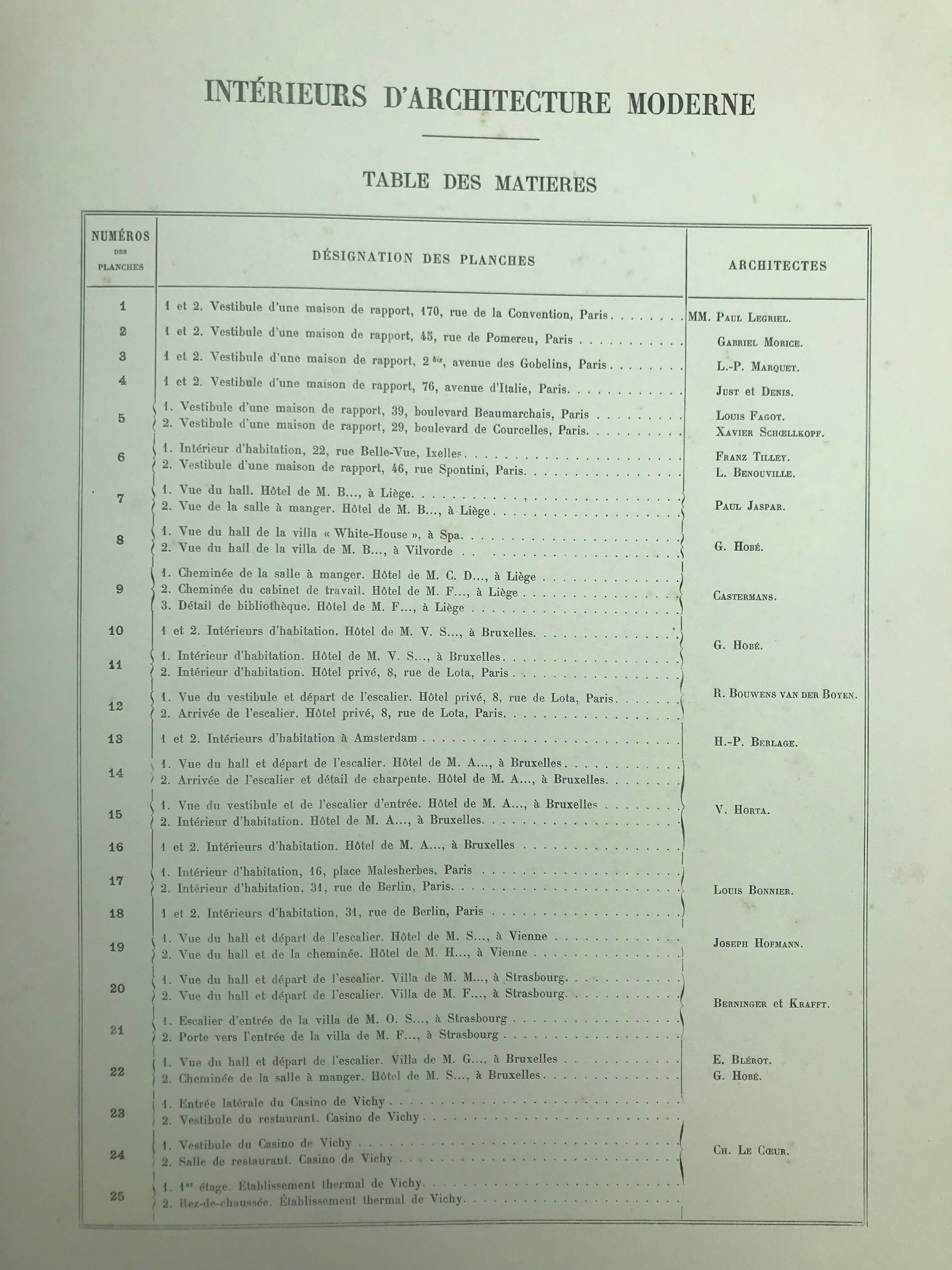 Intérieurs d'Architecture Moderne - Choix de documents recueillis en France et à l'étranger - Vestibules - Escaliers - Appartements - Charles Schmid - 1900