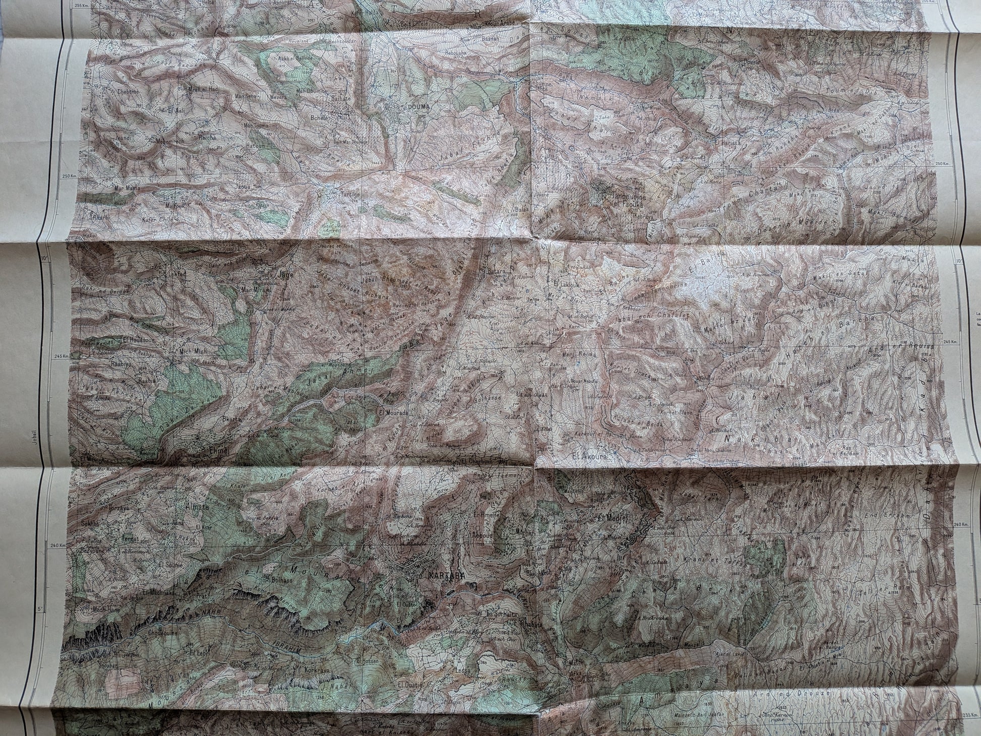Traces de plis et traces d'humidité, en marge, en haut et en bas de la carte