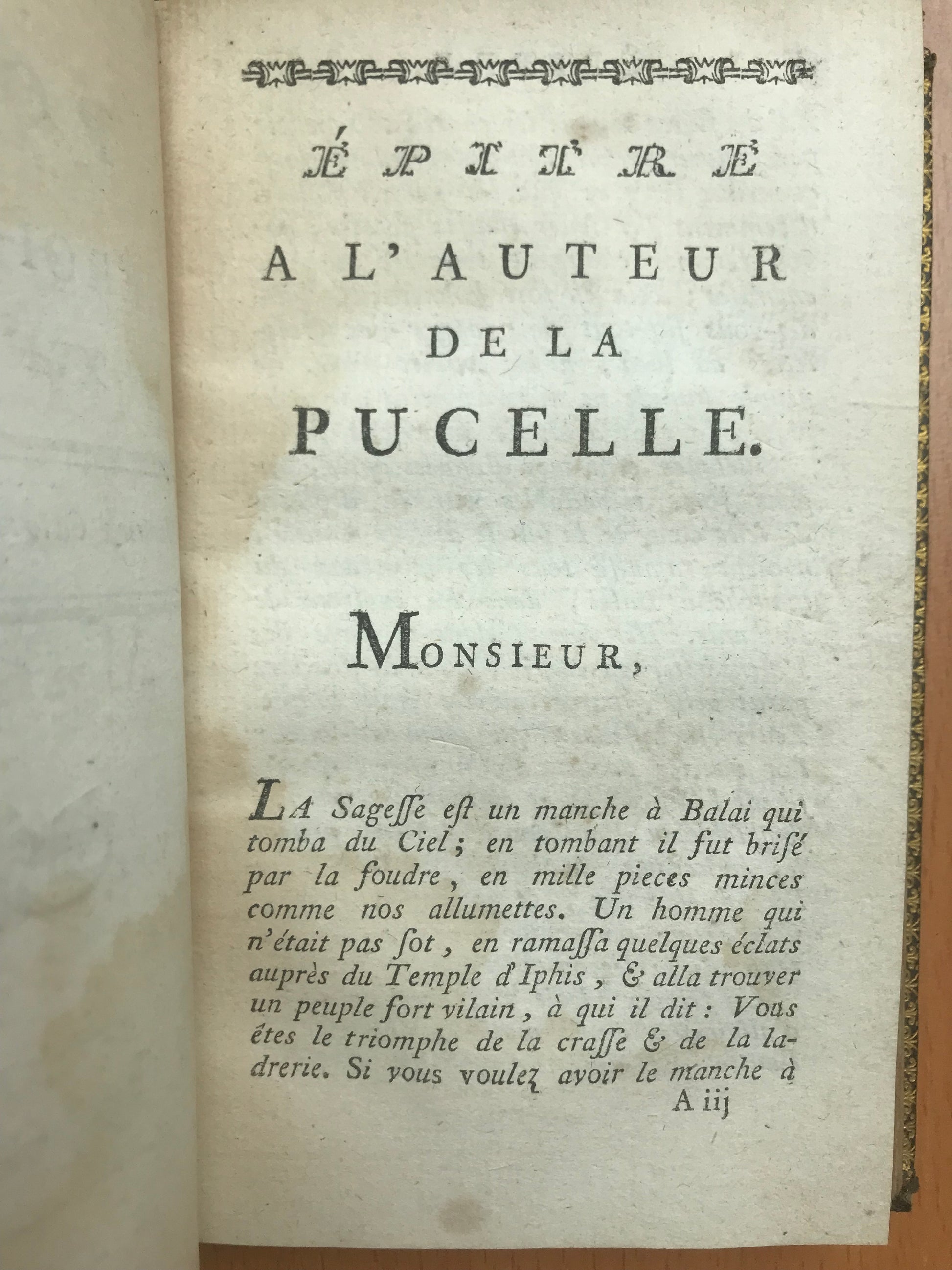 XVIII pages de préface et d'épitre à l'auteur de la Pucelle + 180 pages