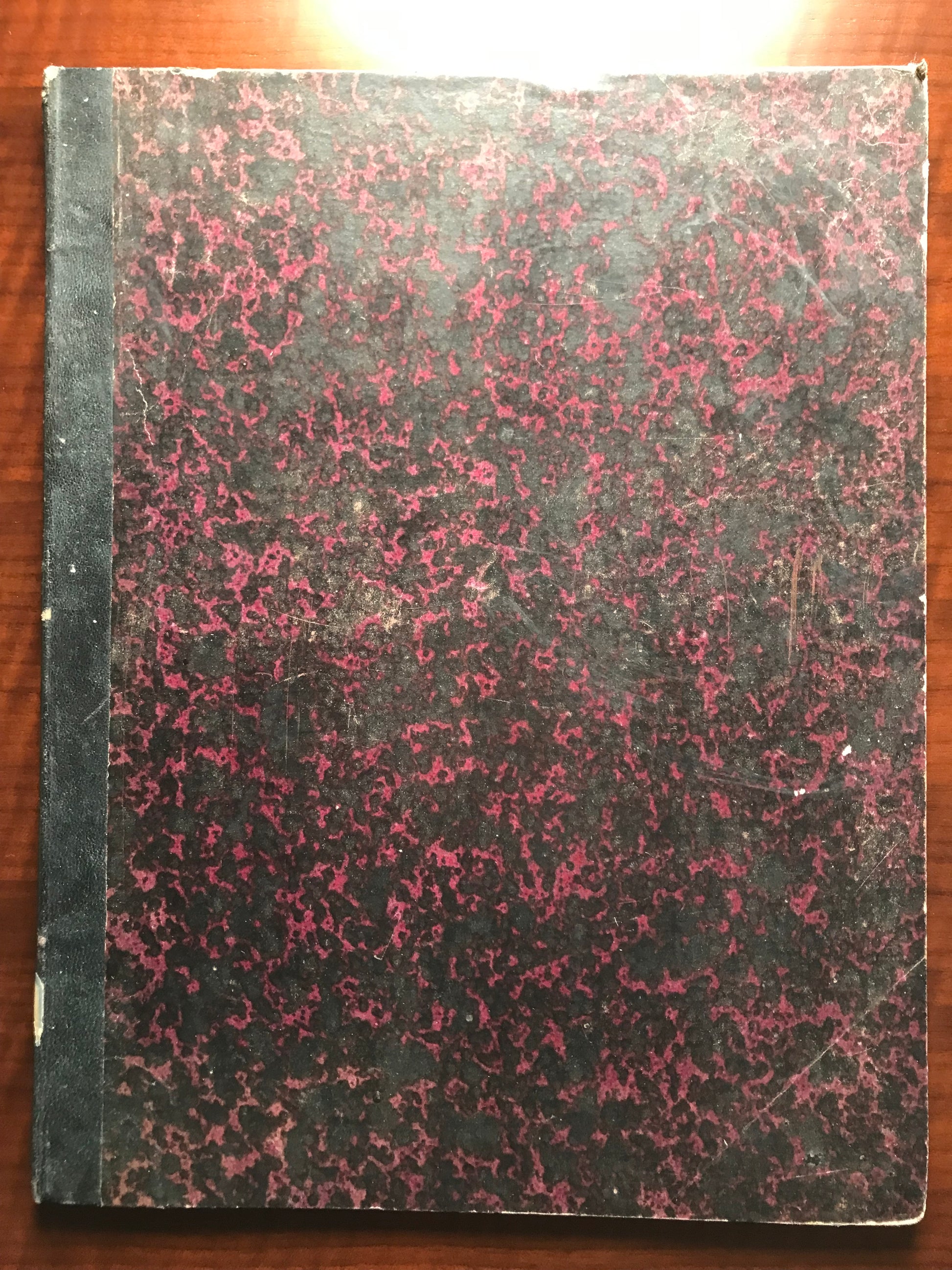 Ouvrage relié demi chagrin et plats moucheté noir et bordeaux de 42 pages