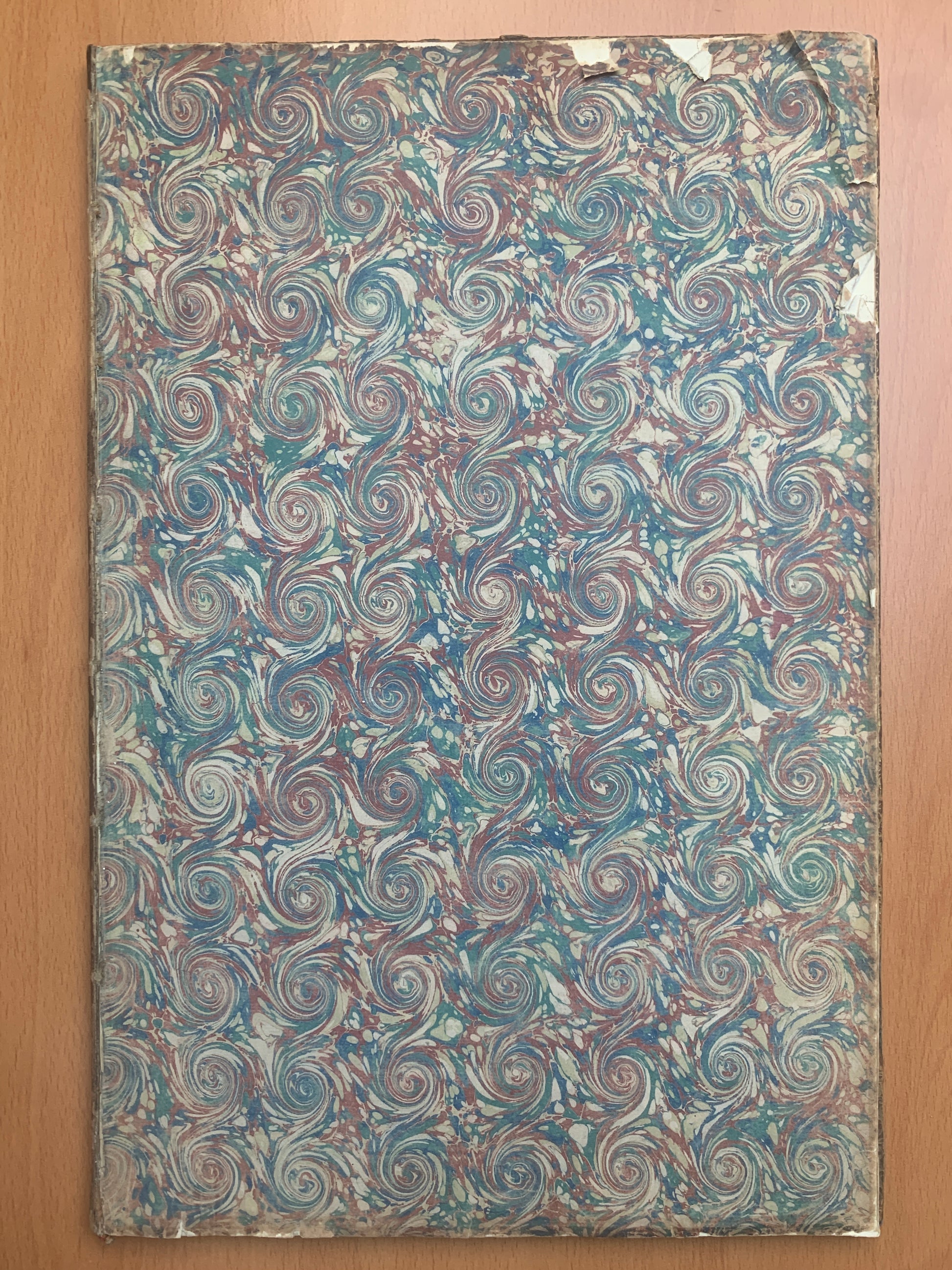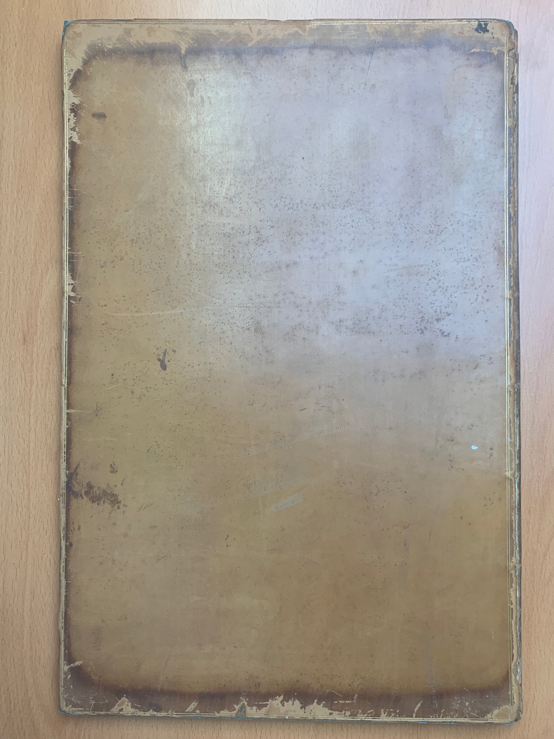 Ouvrage relié plein veau, premier plat absent, dos lisse muet