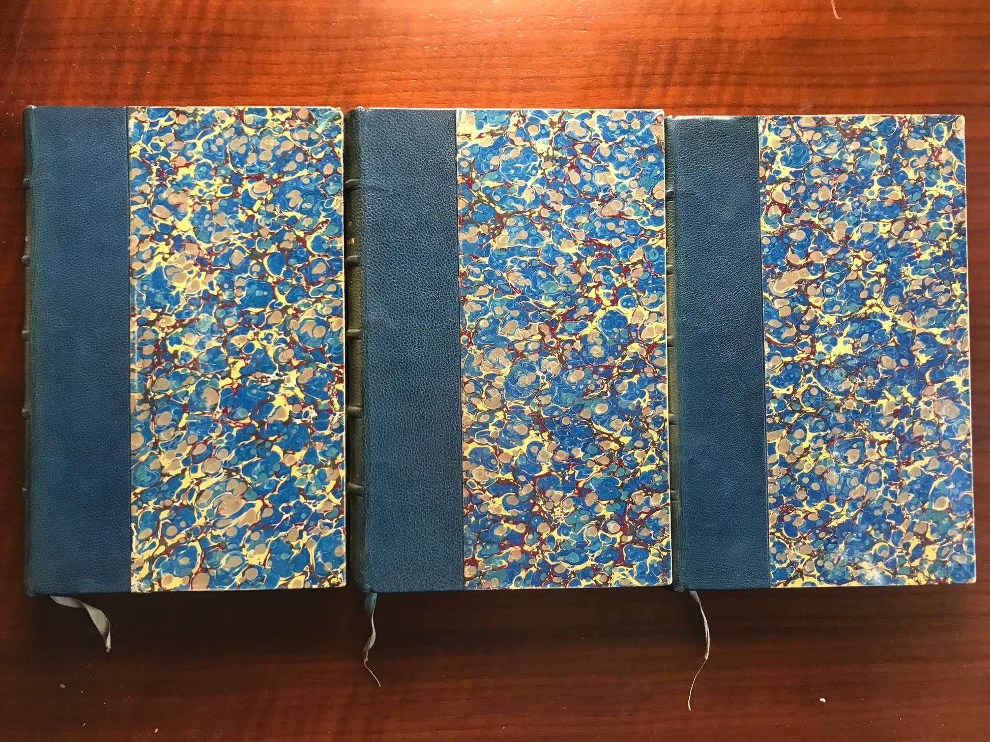 Ouvrage complet en trois tomes relié demi maroquin bleu, dos à cinq nerfs, caissons ornés, titre doré et tranche supérieure dorée