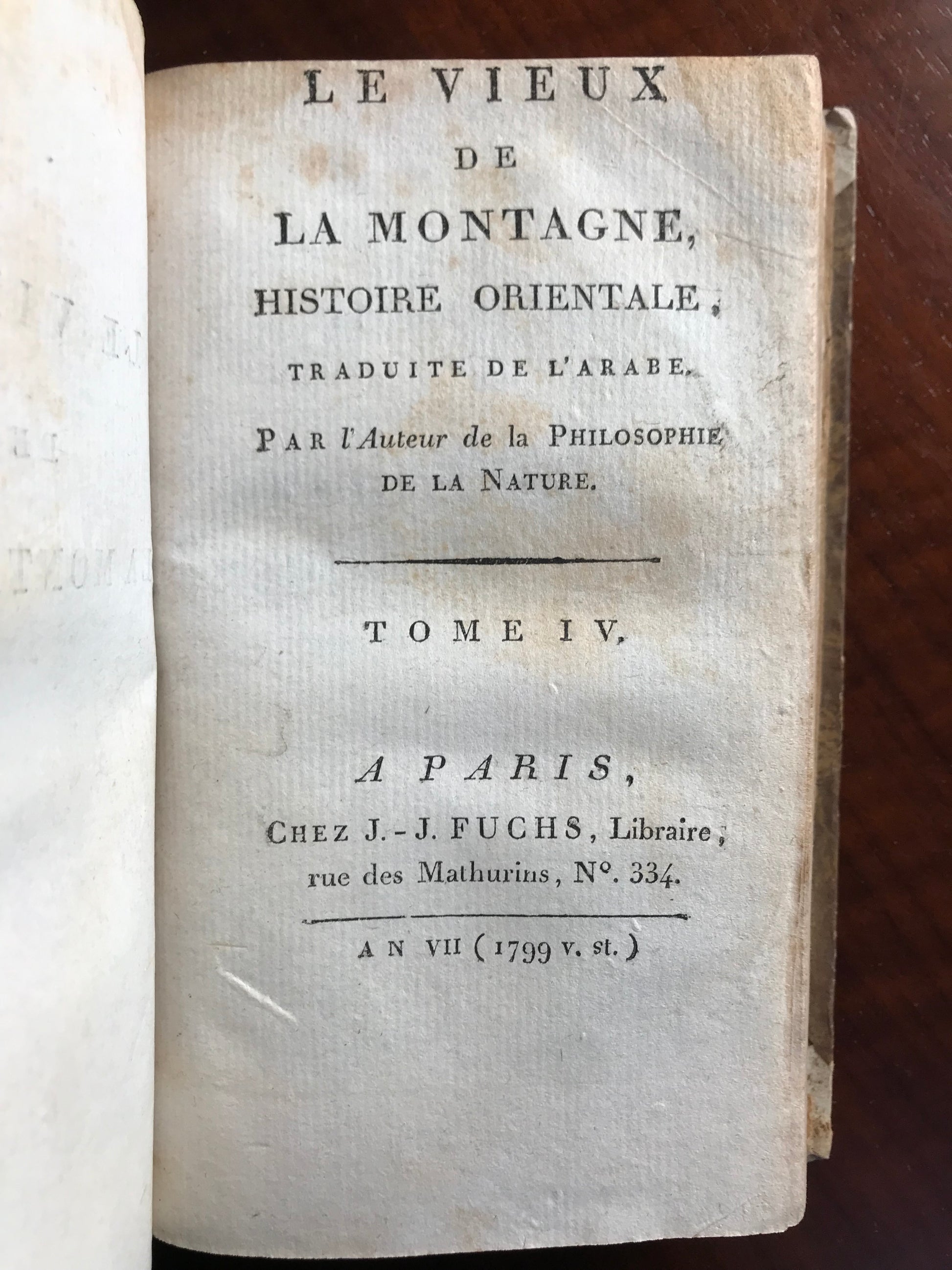 Le Vieux de la Montagne - Histoire orientale - Traduite de l'arabe par l'Auteur de la Philosophie de la Nature - Jean-Baptiste-Claude Delisle de Sales - Première édition de la traduction française - 1799