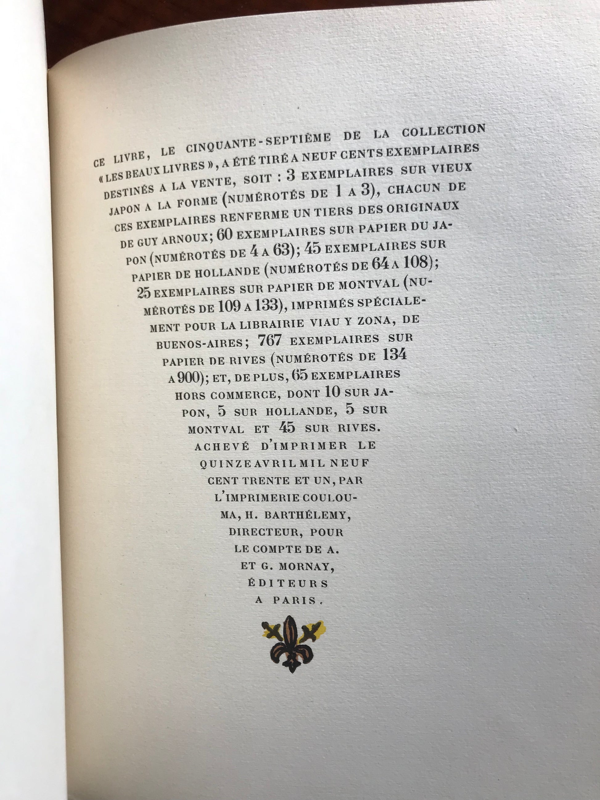 Un des 767 exemplaires numérotés sur papier de Rives