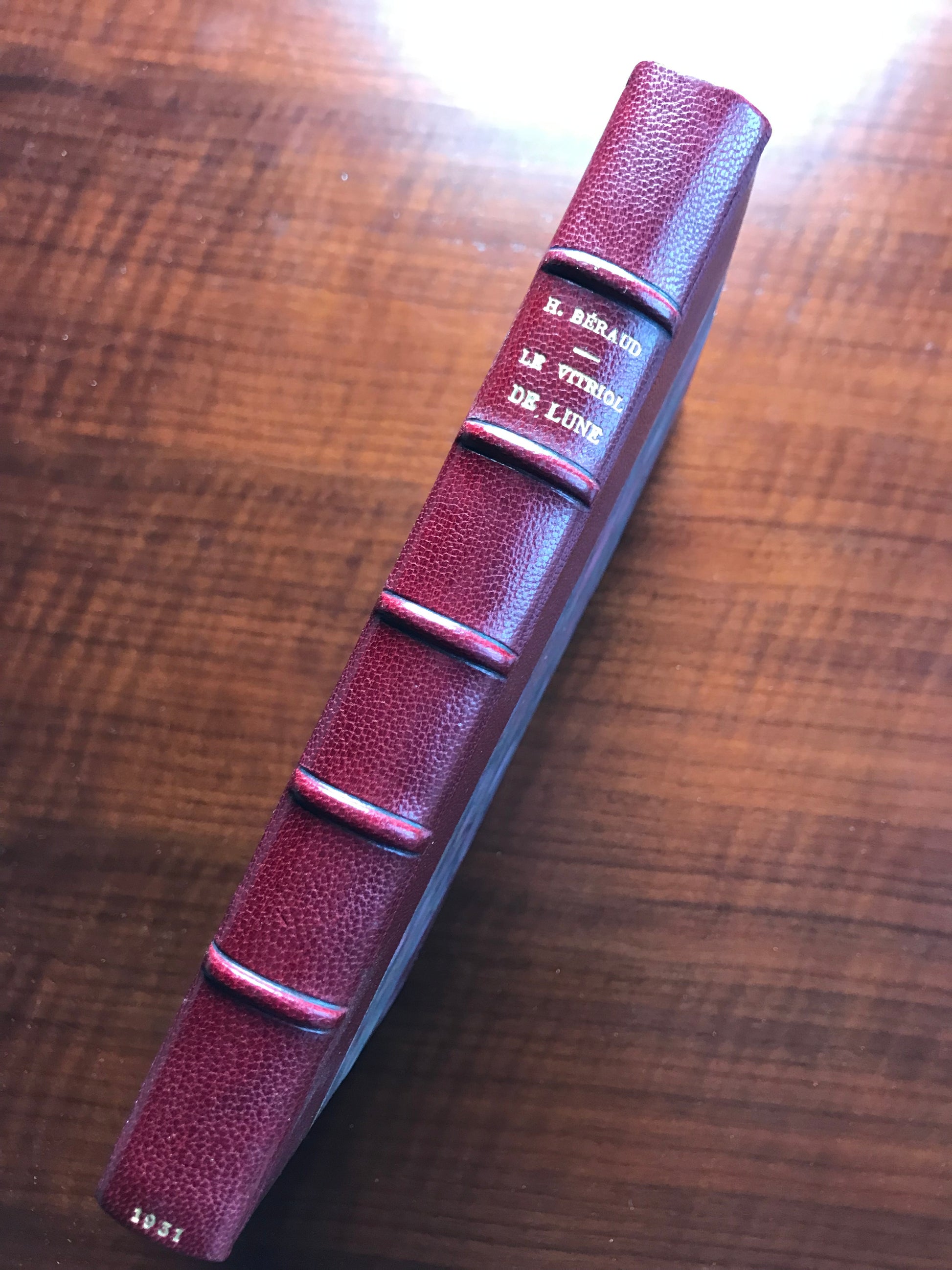 Ouvrage relié demi chagrin à coins, dos à cinq nerfs, titre et date dorés, tranche supérieure dorée