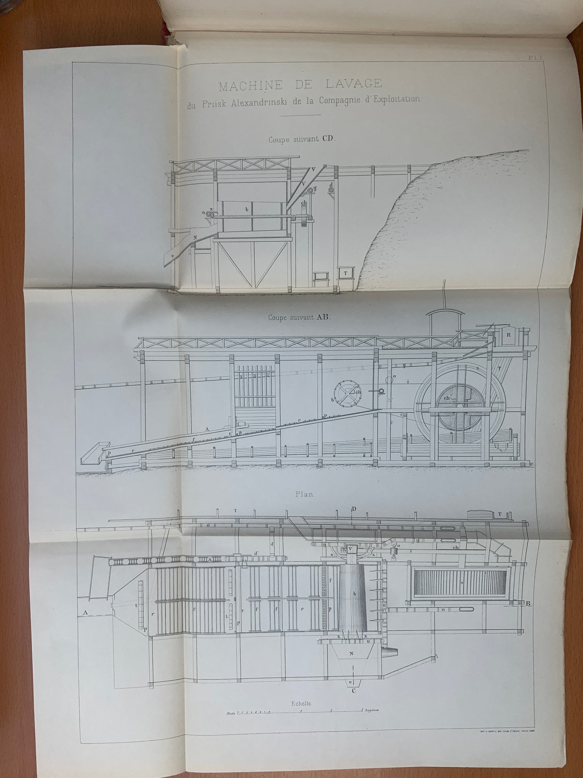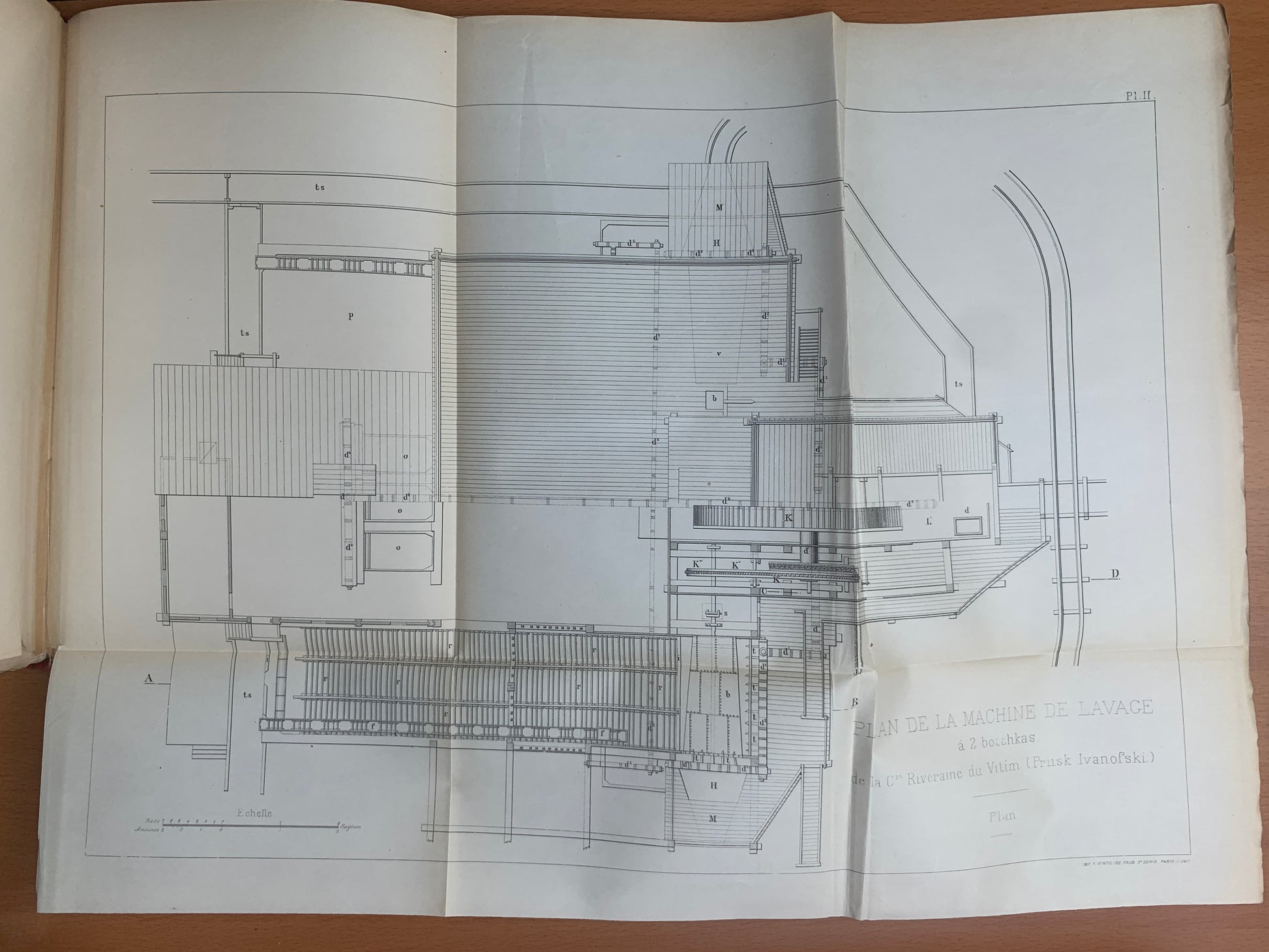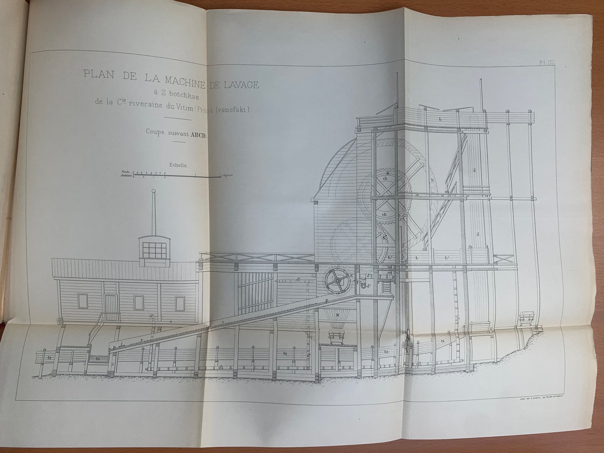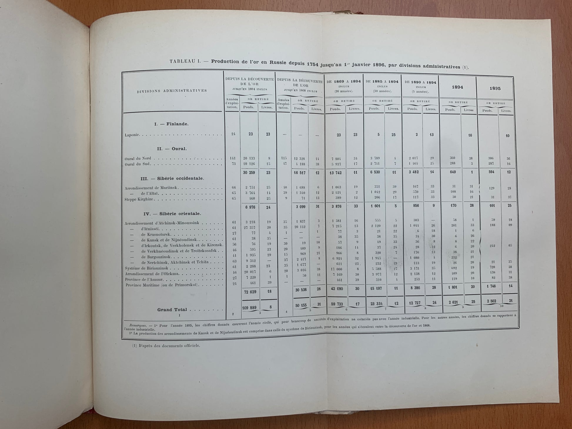 12 photogravures hors texte, 7 planches dépliantes hors texte et 1 grande carte minière de la Sibérie, dépliante, en couleurs, hors texte