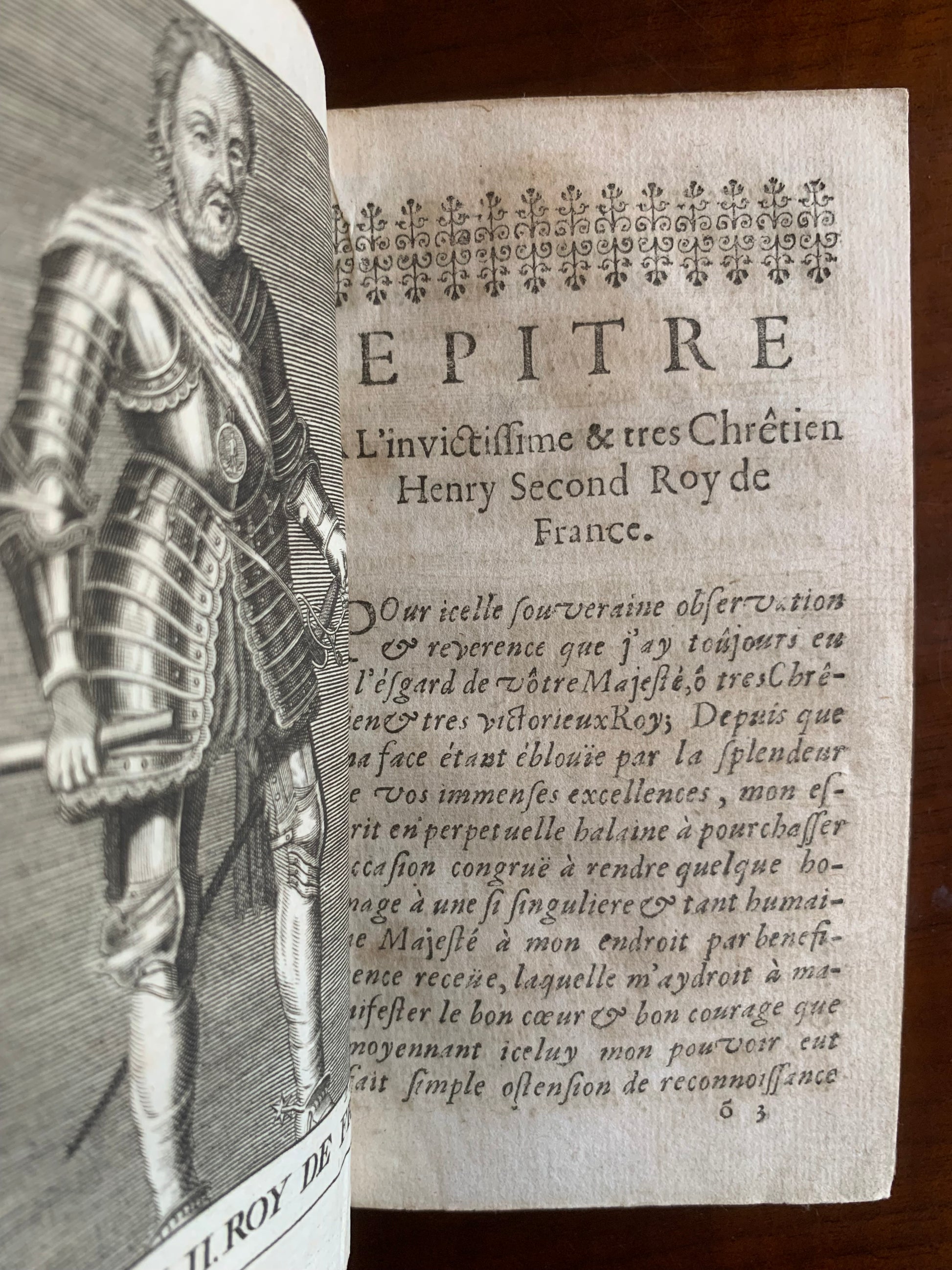 5 pages d'avertissement au lecteur ; 12 pages sur la vie de Maistre Michel Nostradamus ; 9 pages de préface de Michel Nostradamus, adressée à son fils César Nostradamus, pour lui donner une idée des Centuries de ses prophéties ; 4 pages d'épître à l'invictissime & très chrétien Henry Second Roy de France et 218 pages de texte