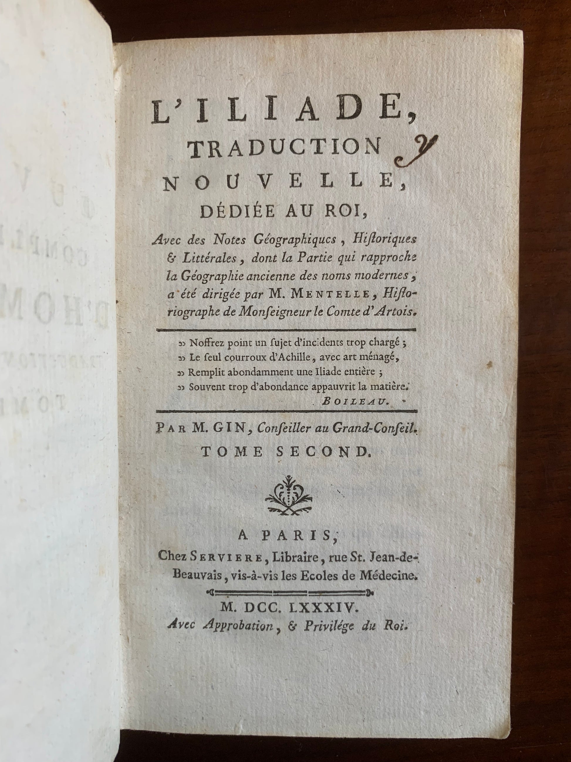 L'Illiade - Oeuvres d'Homère - M. Gin - 1784