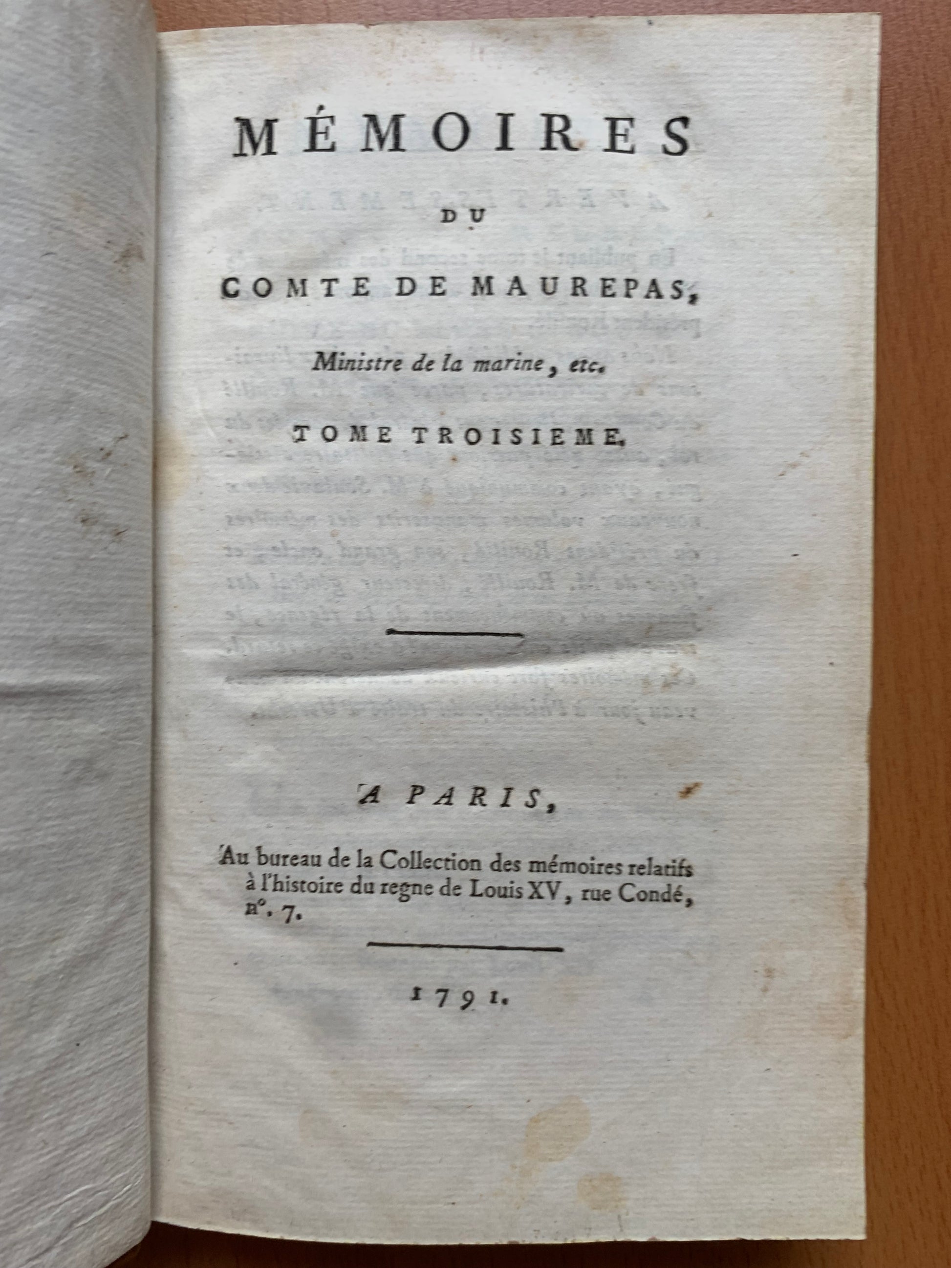 Mémoires du Comte de Maurepas - Edition originale - 1791