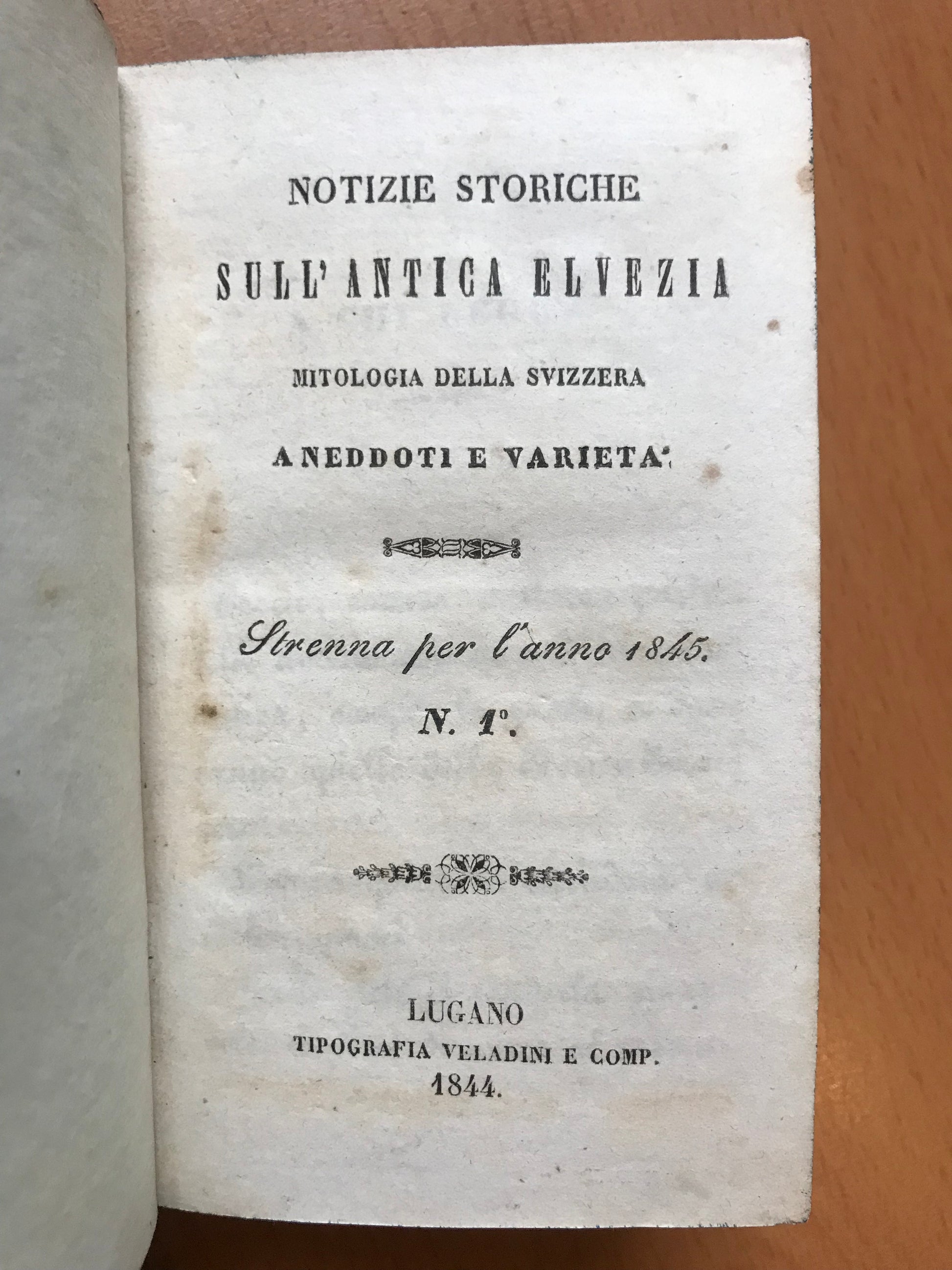 Notizie Storiche Sull'Antica Elvezia - Notizie Storiche Sulla Svizzera - Mitologia della Svizzera - 1844