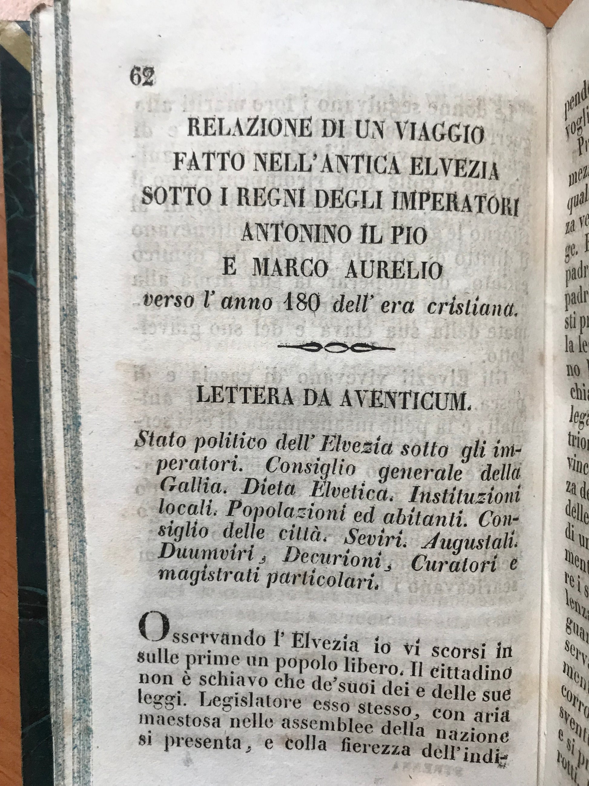 - Relazione di un viaggio fatto nell' antica Elvezia sotto i regni degli imperatori Antonio il Piio e Marco Aurelio verso l'anno 180 dell' era cristiana