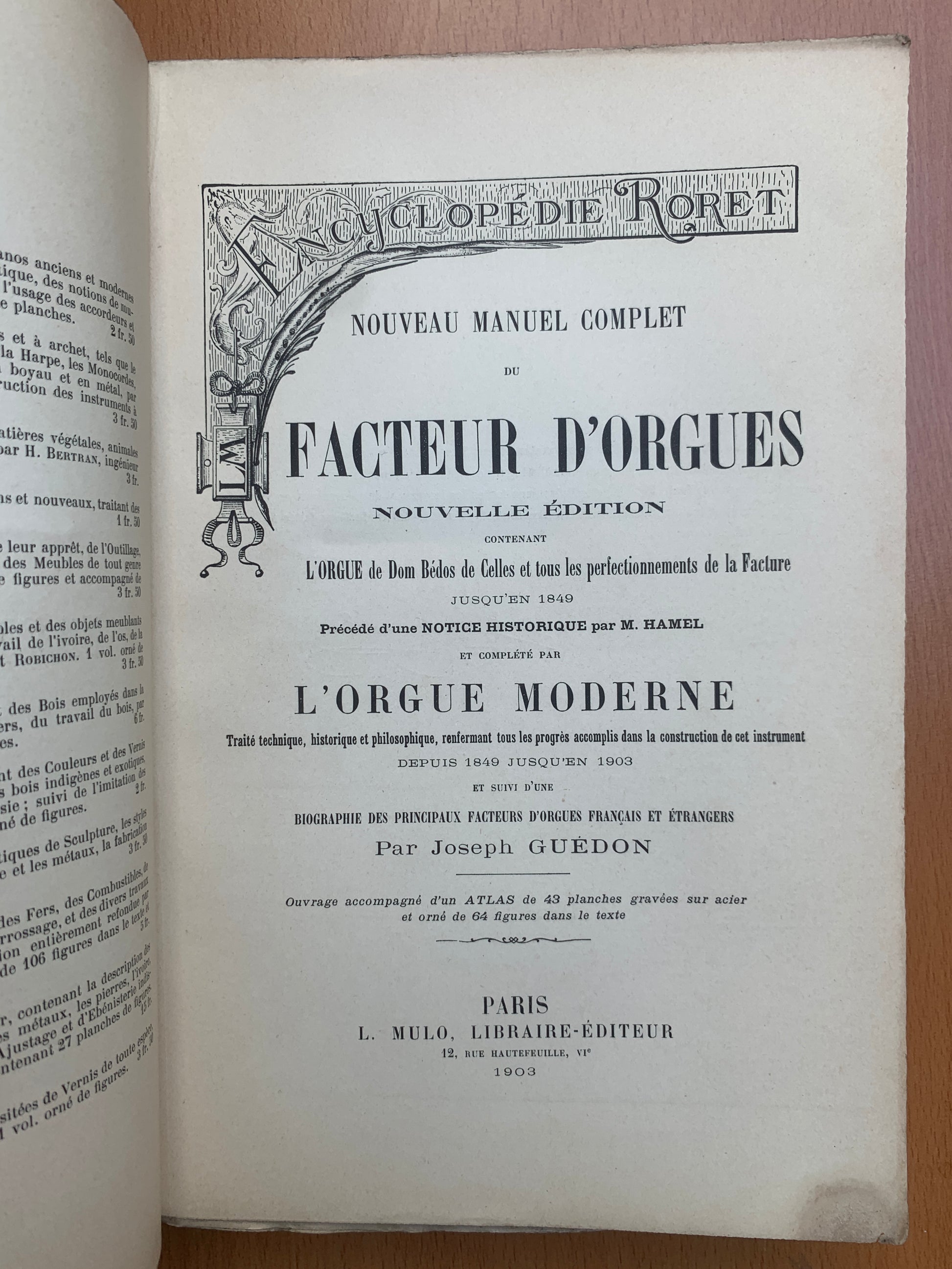 Nouveau manuel complet du Facteur d'Orgues - Joseph Guédon - 1903
