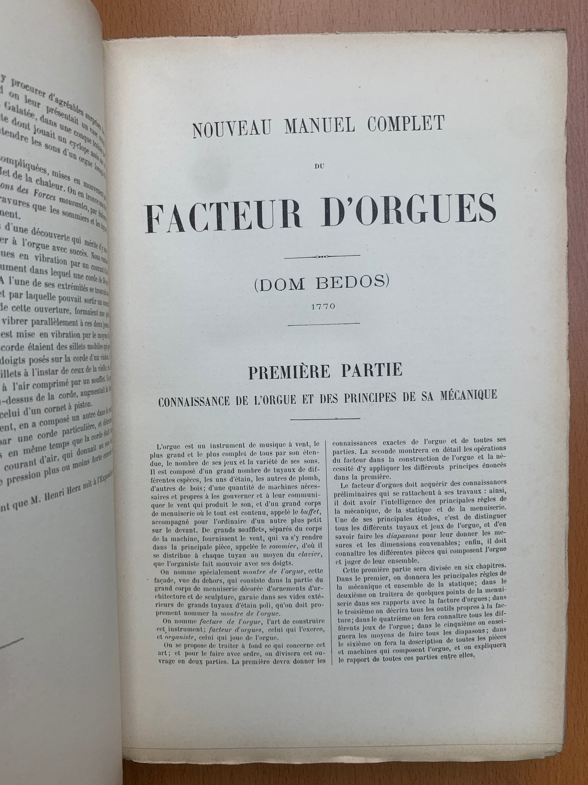 Nouvelle édition contenant l'Orgue de Dom Bédos de Celles et tous les perfectionnements de la Facture jusqu'en 1849