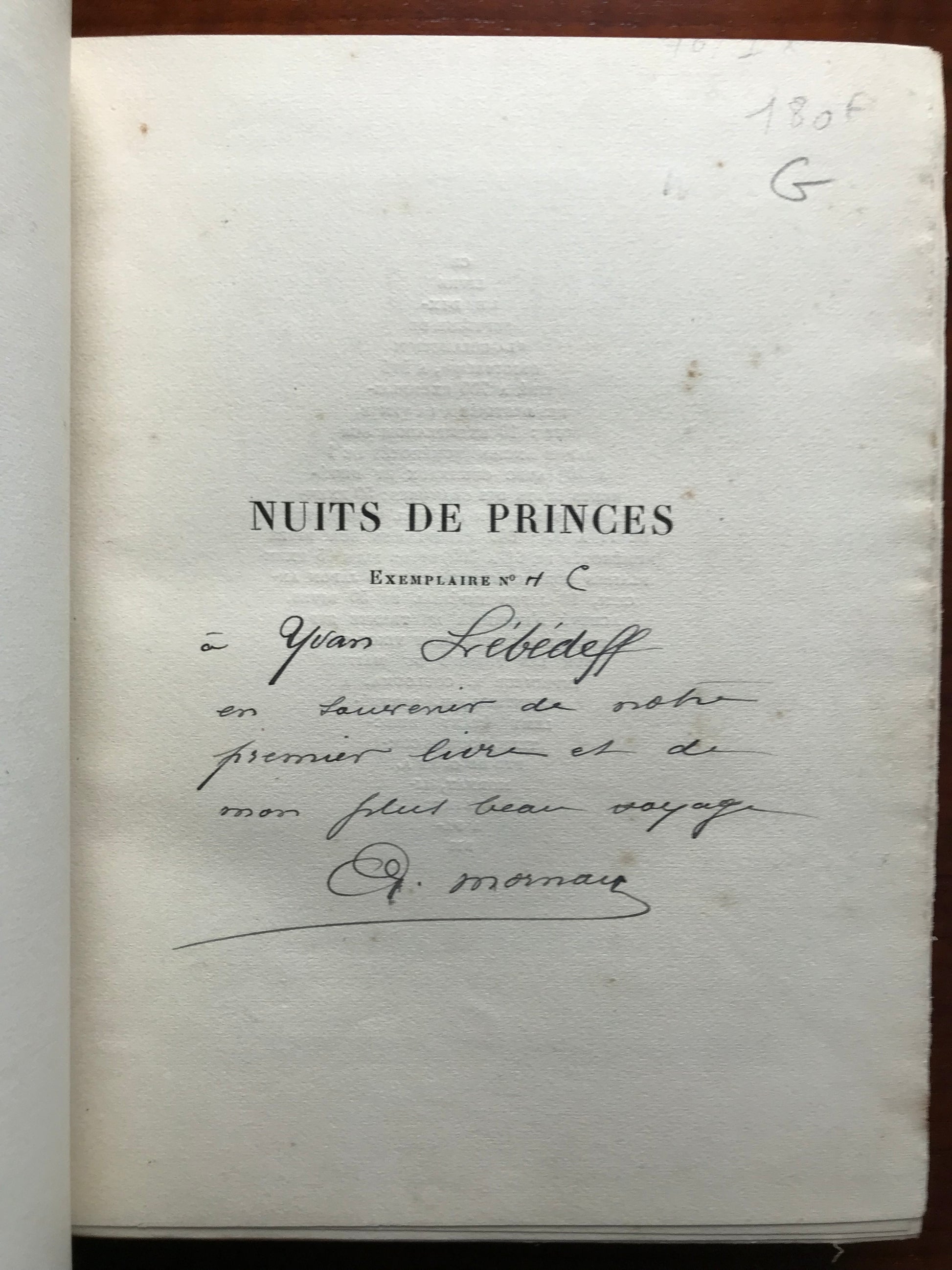 Envoi autographe de l'éditeur à Yvan Lébédeff