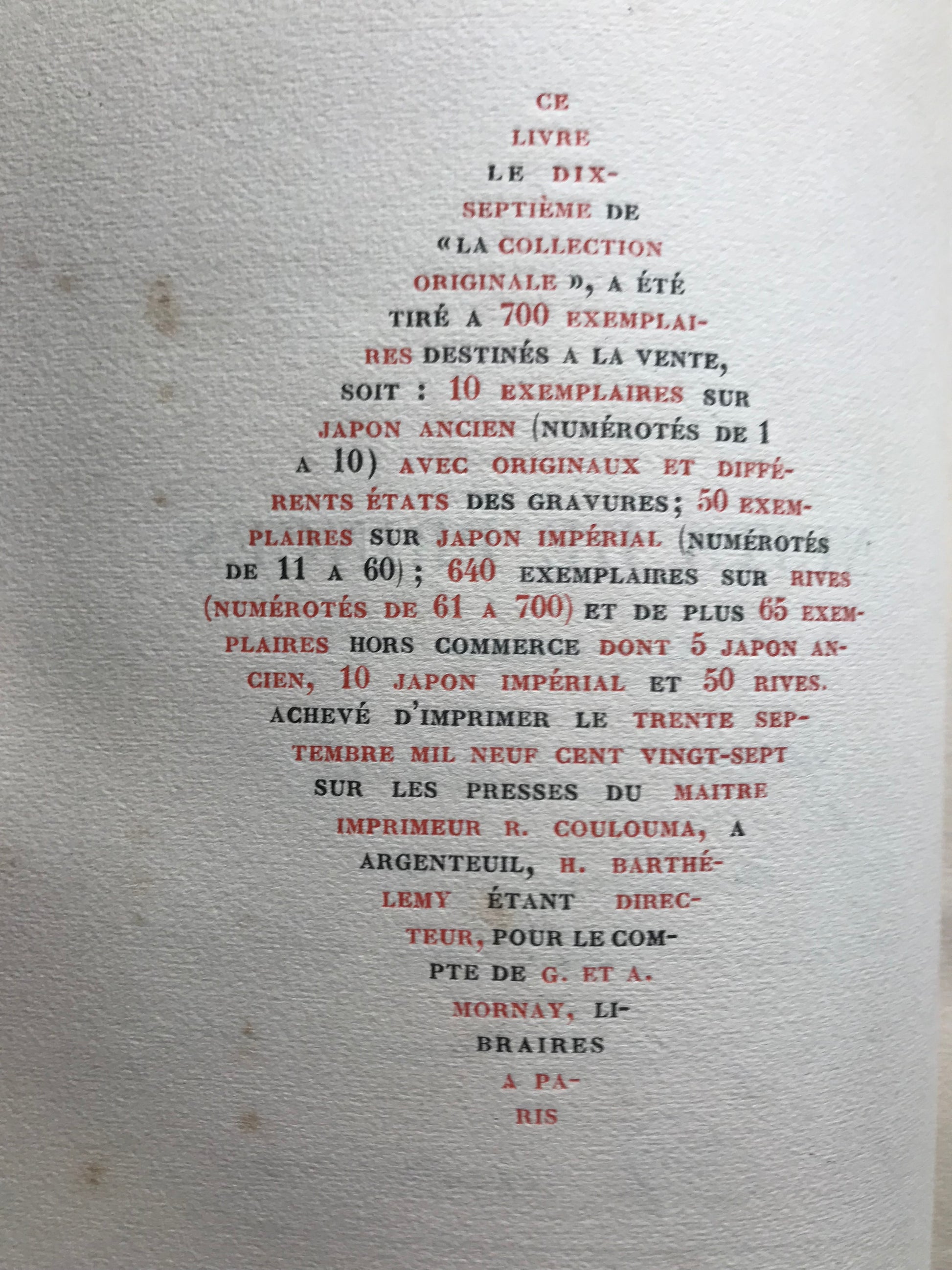 323 pages et 12 eaux-fortes originales dont 10 hors texte, une en couverture et une vignette en page de titre
