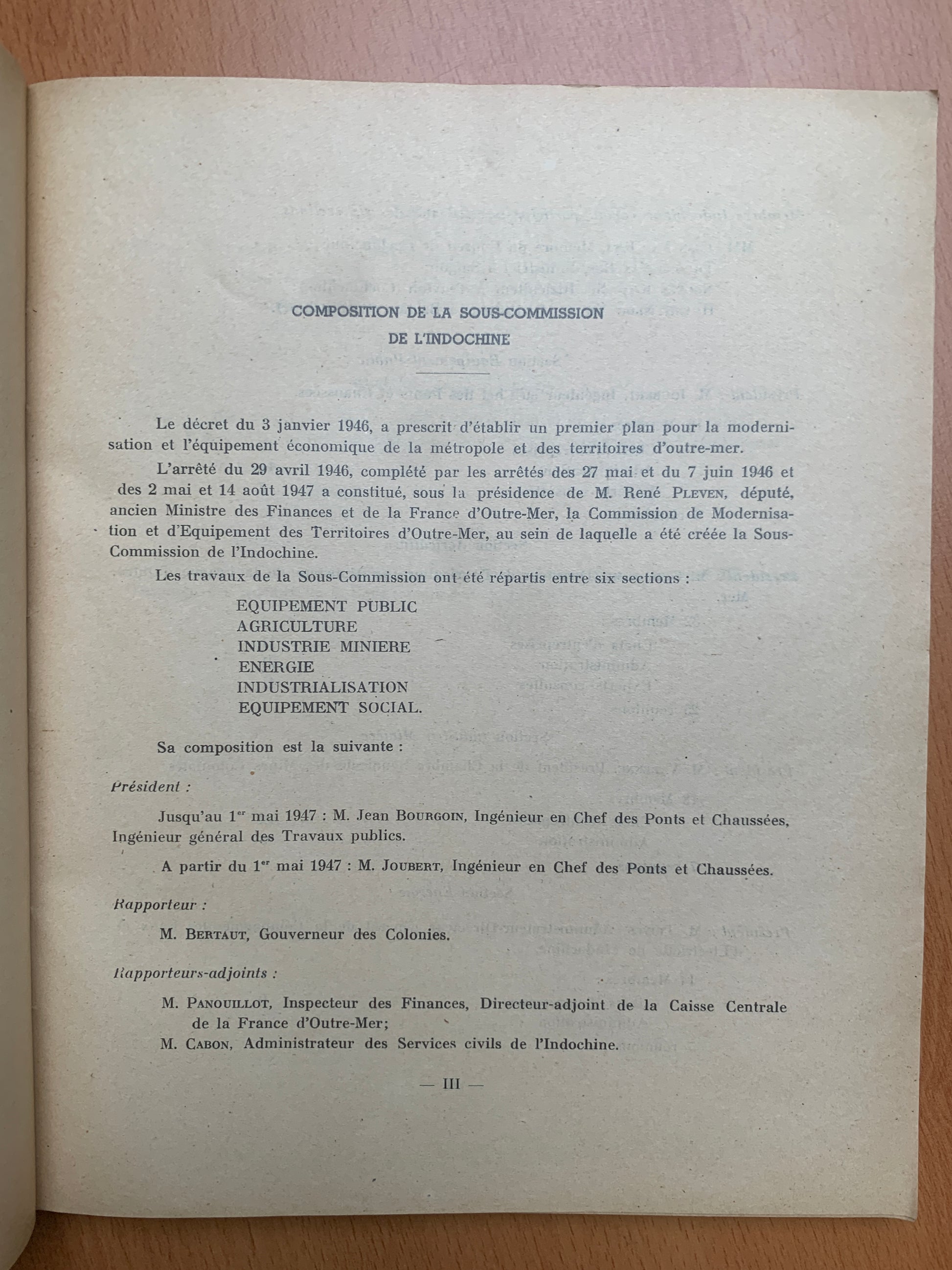 Premier rapport de la sous-commission de Modernisation de l'Indochine - 1948