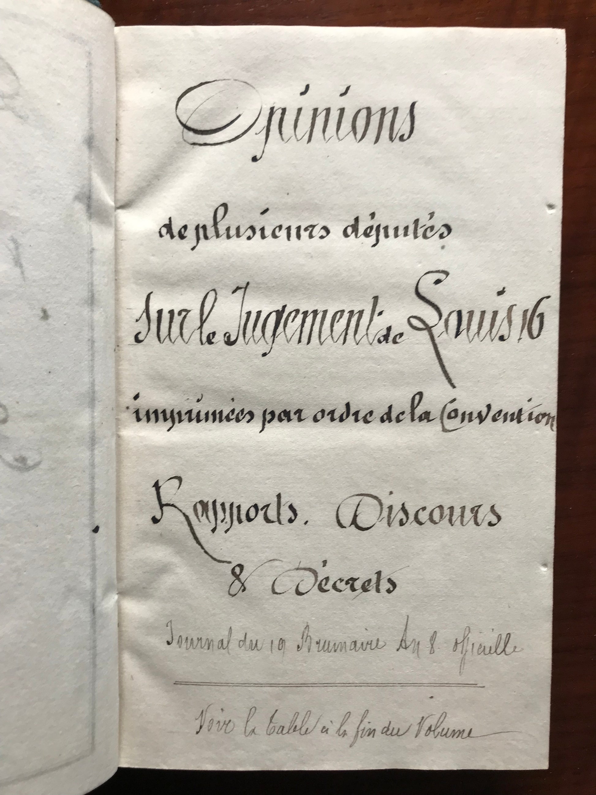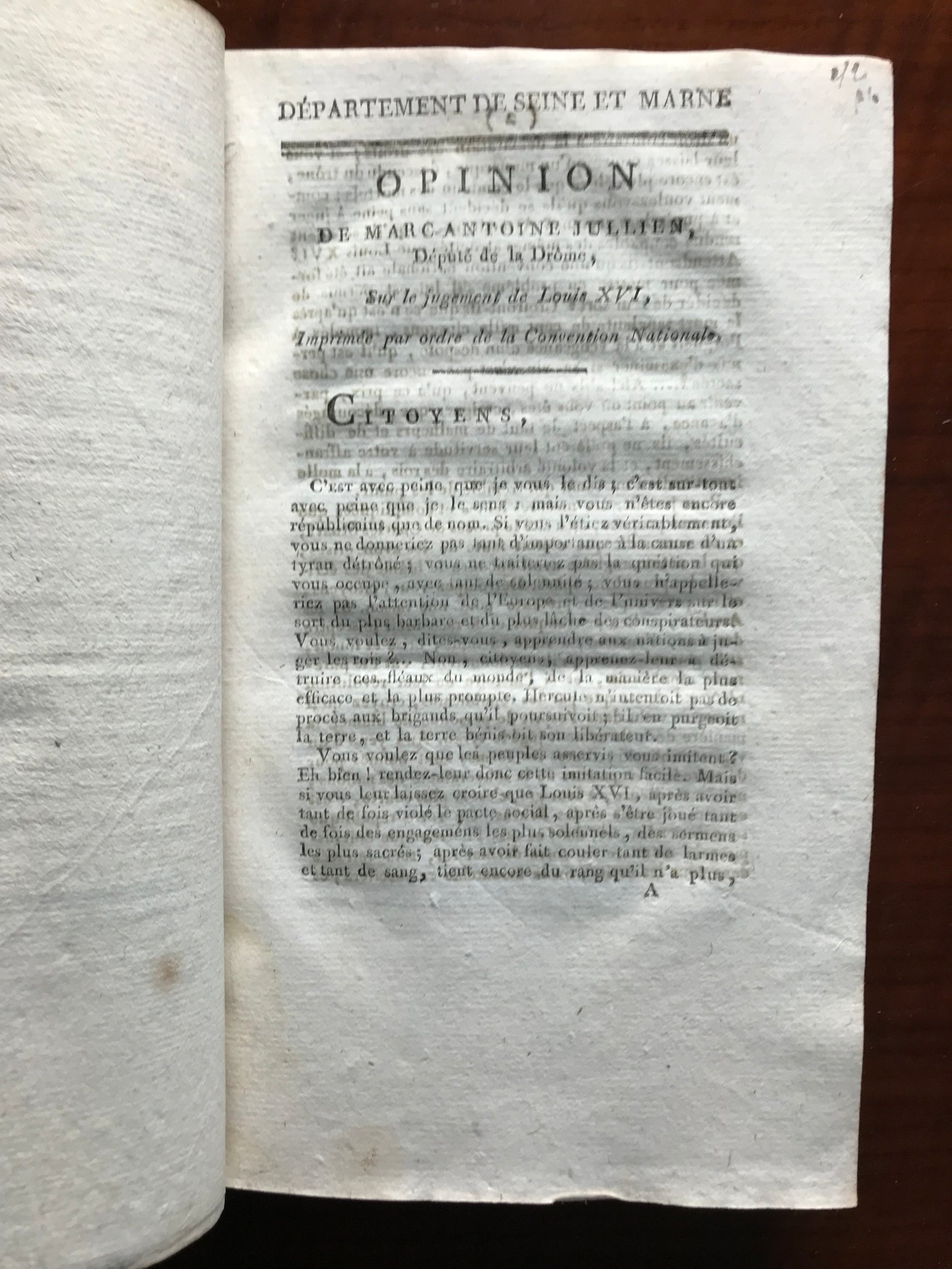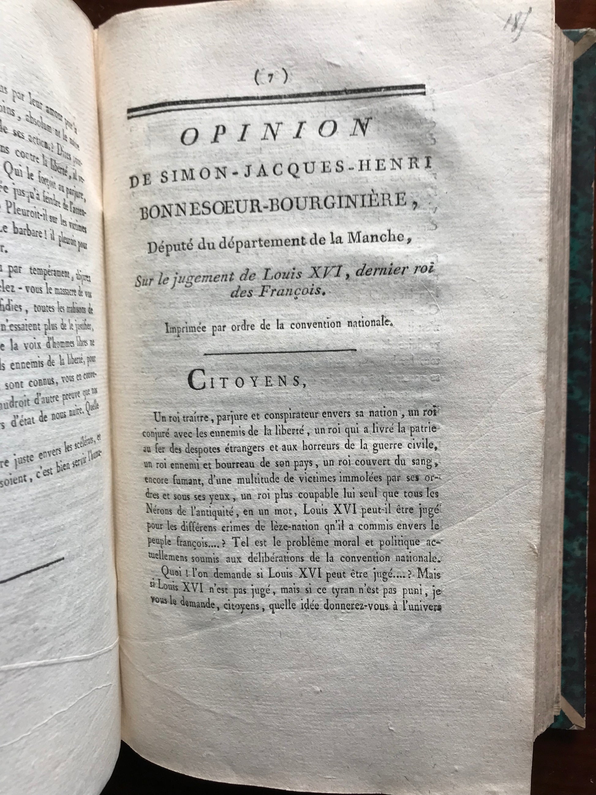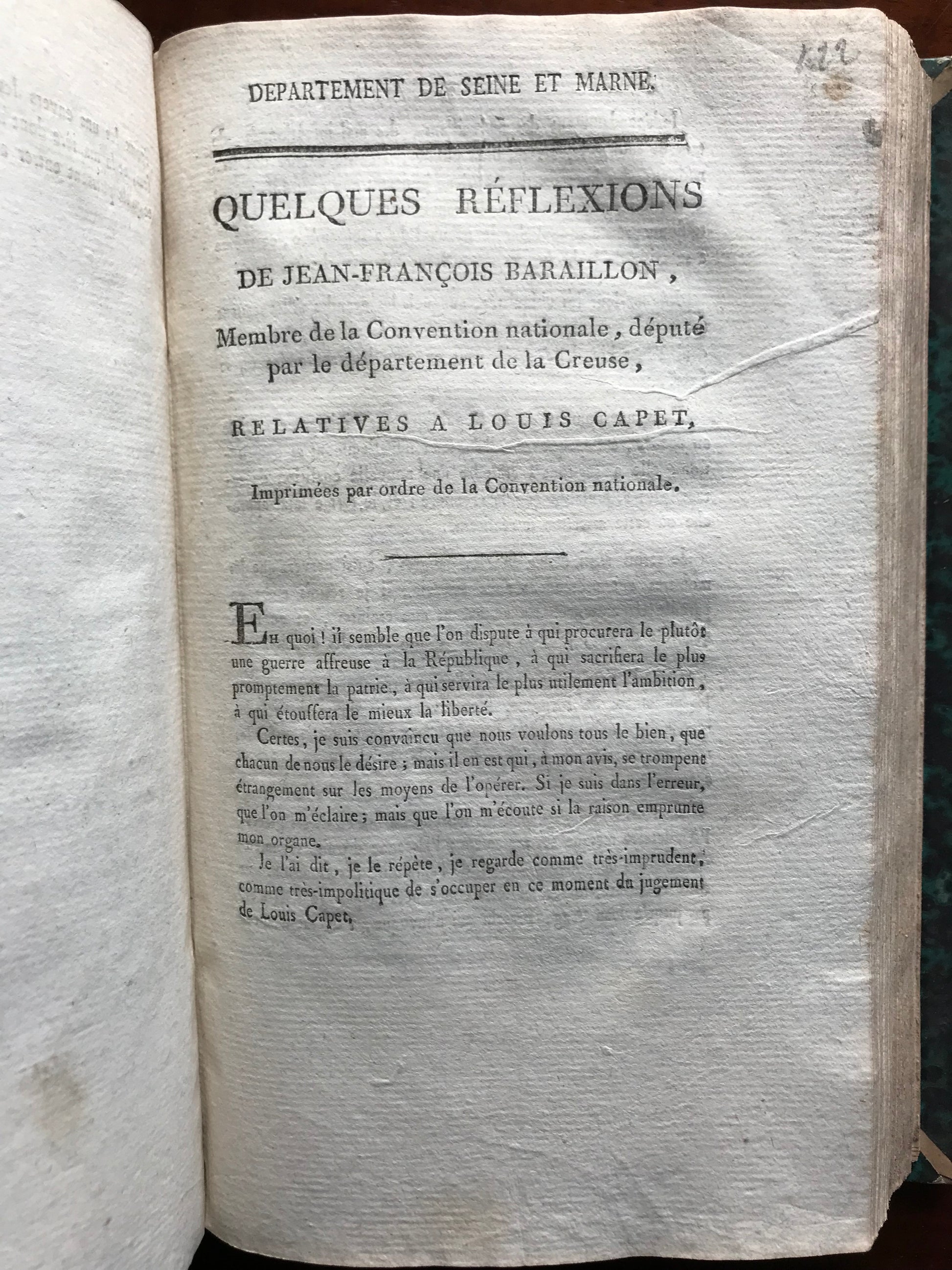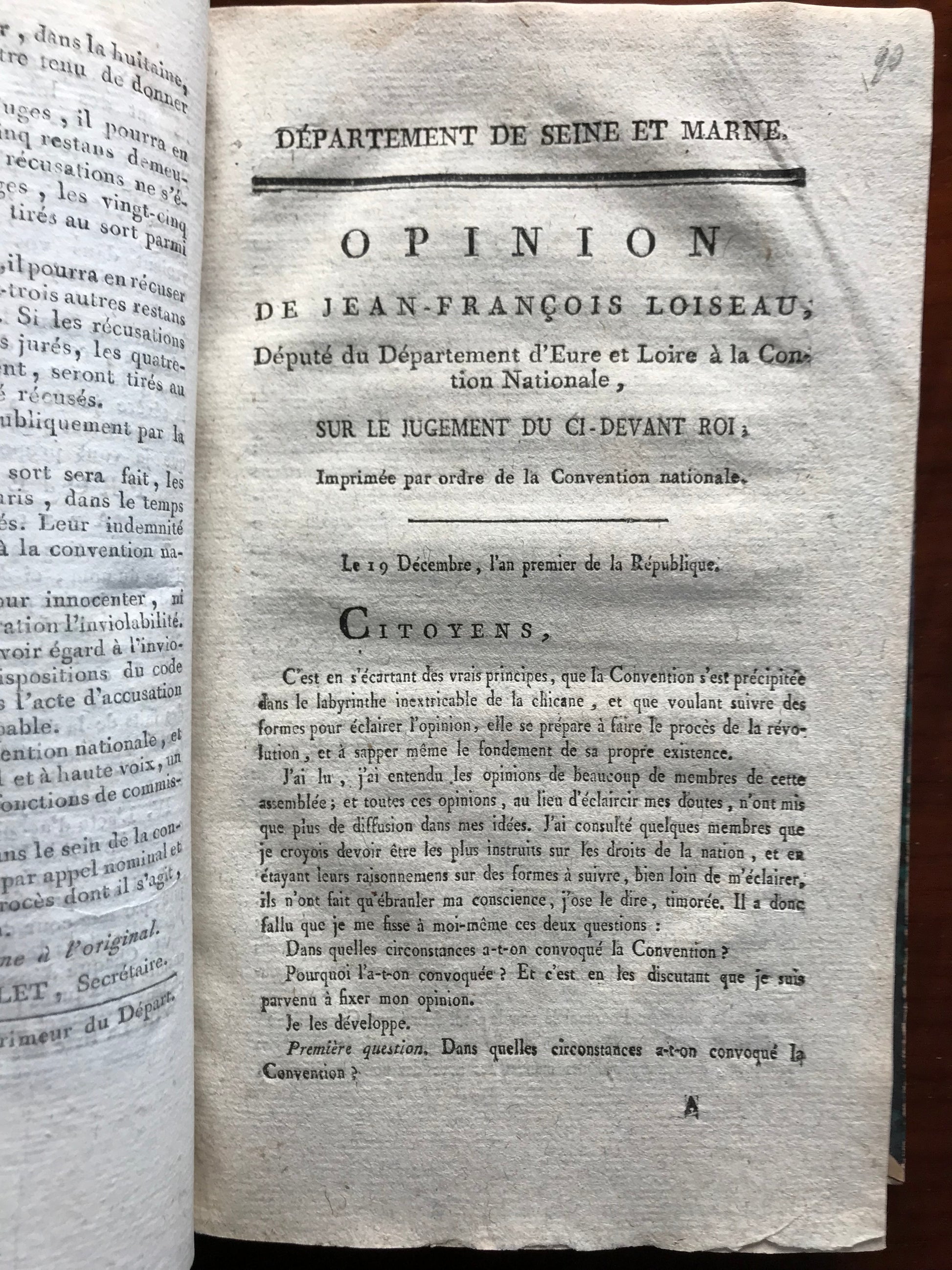 - Opinion de Jean-François Loiseau, député du département d'Eure et Loire sur le jugement du ci-devant roi, Encore une opinion sur le jugement de Louis XVI par Dechézeaux, député du département de la Charente Maritime, Opinion de Louis Turreau, député du département de l'Yone sur Capet, Réflexions sur le jugement de Louis XVI, par le citoyen Blutel, député du département de la Seine Inférieure