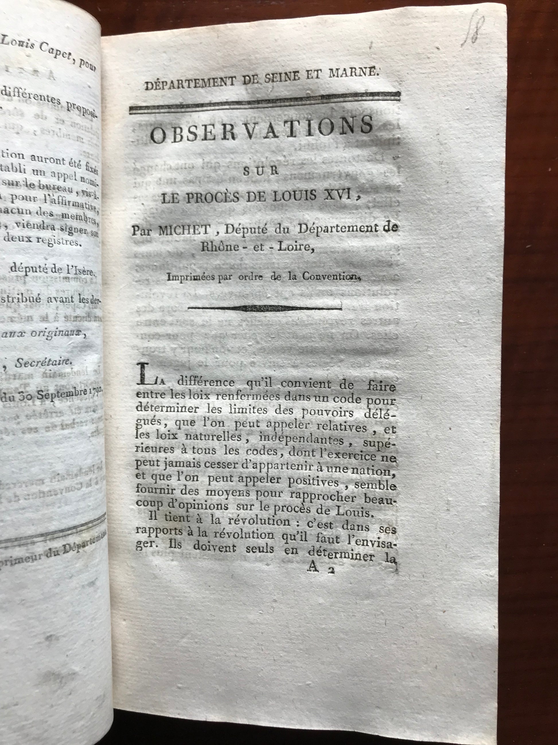 - Observations sur le procès de Louis XVI par Michet, député du département de Rhône et Loire, Opinion de Ch. Lambert, député de la Côte d'Or sur le jugement de Louis XVI,
