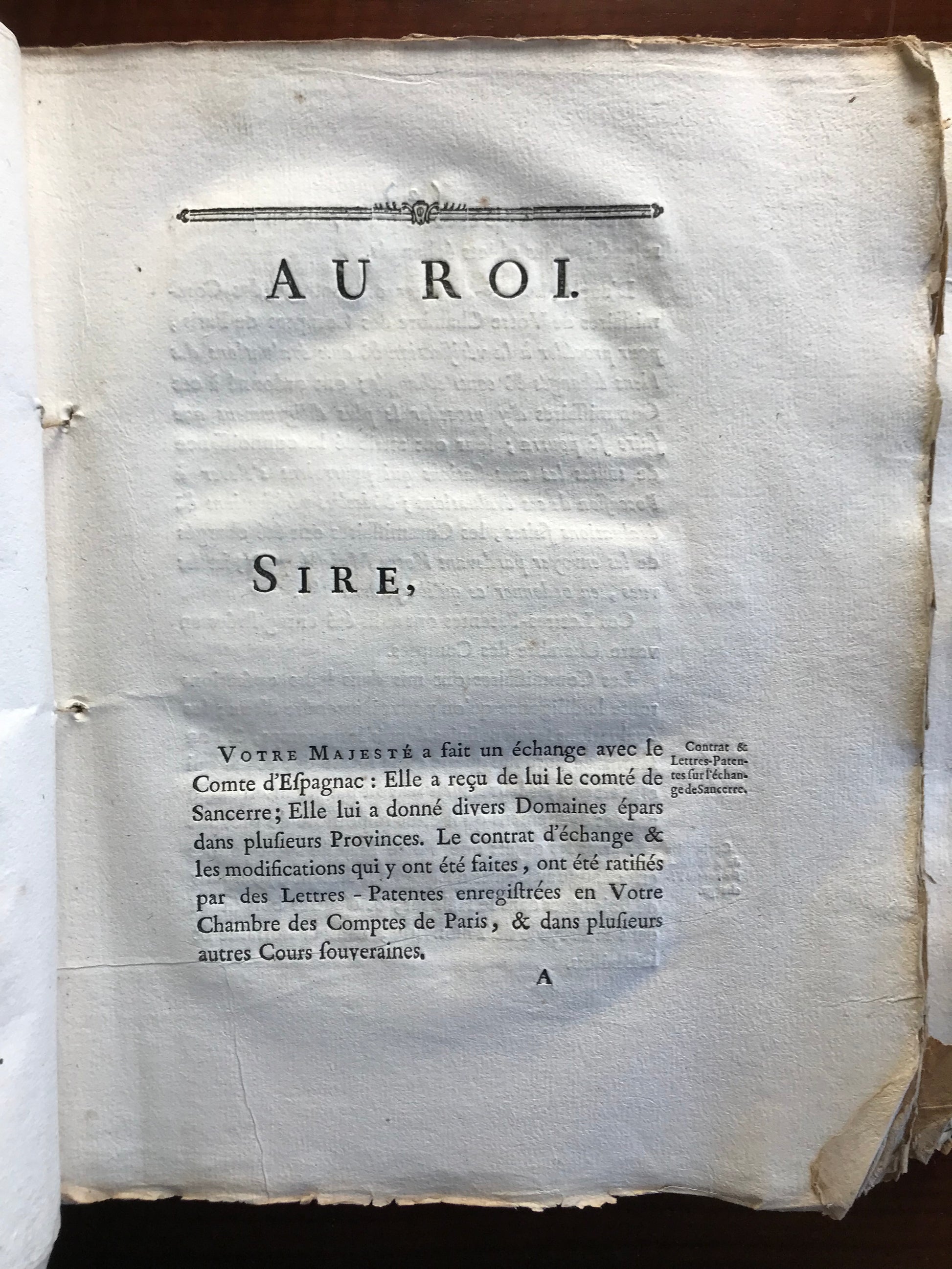 - Contrat & lettres patentes sur l'échange de Sancerre