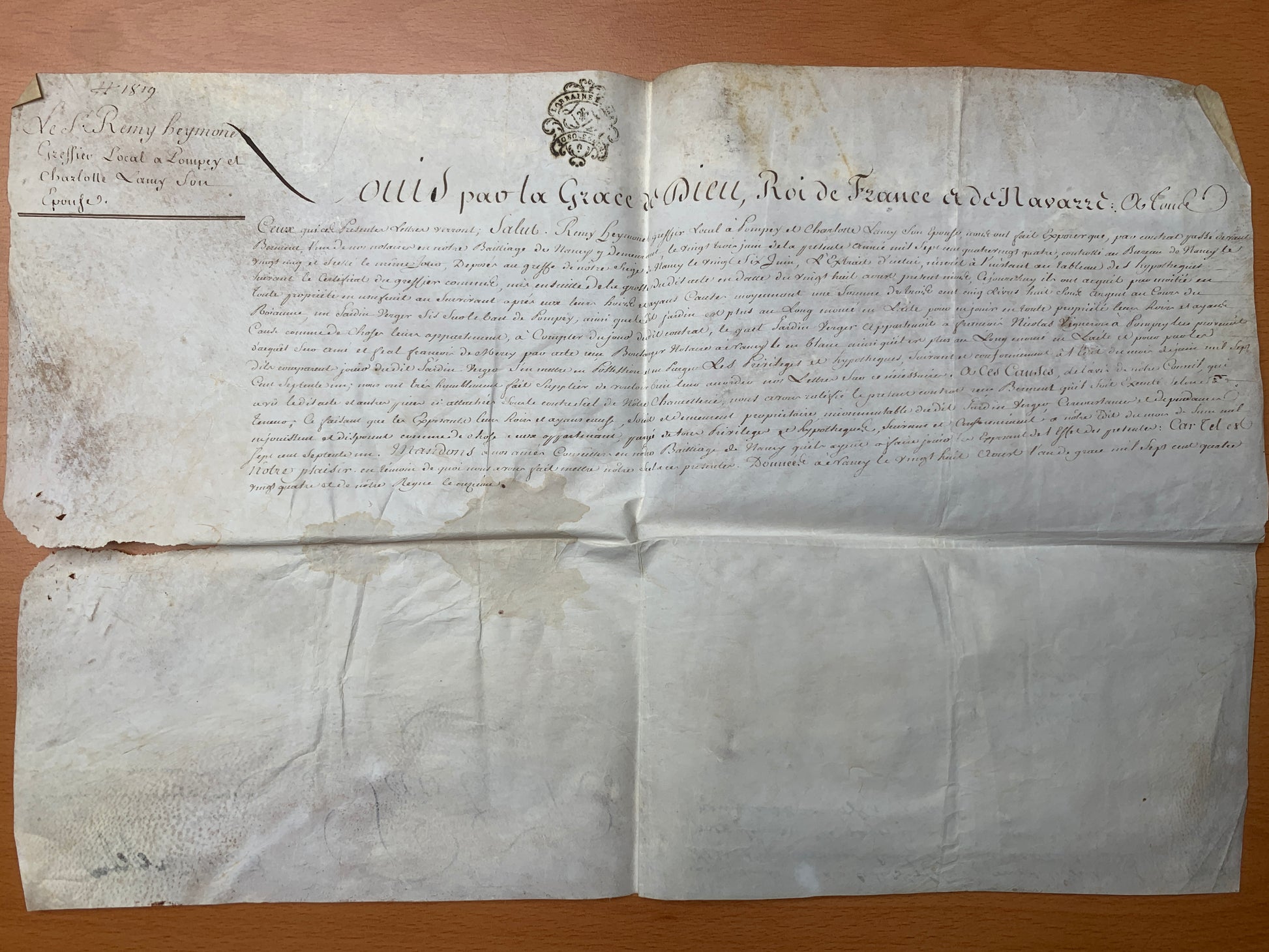 Document sur vélin, un tampon de Lorraine et de Bar, plusieurs signatures au dos