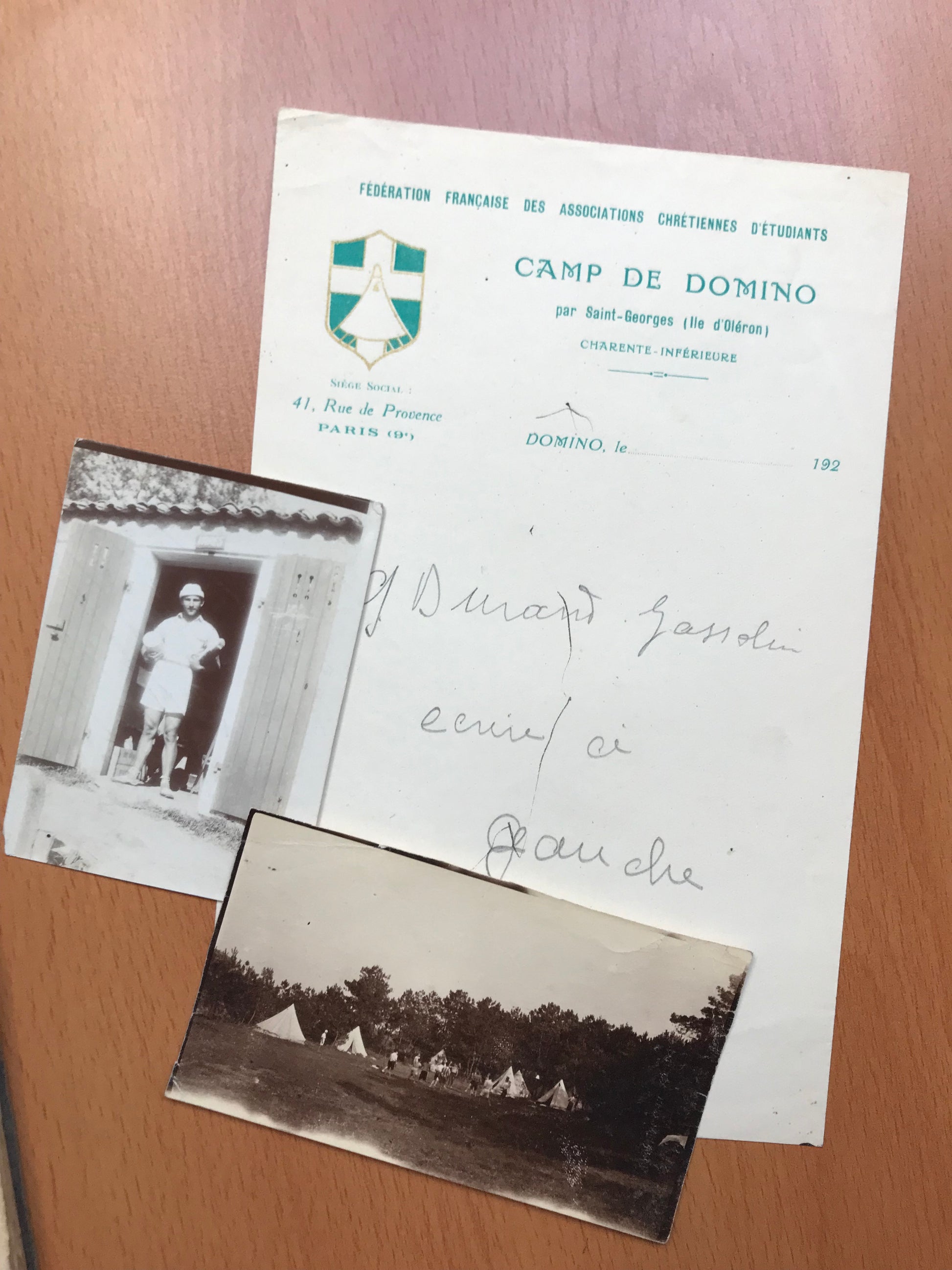 Joint à l'ouvrage : un papier et deux photos du camp de domino de 1922