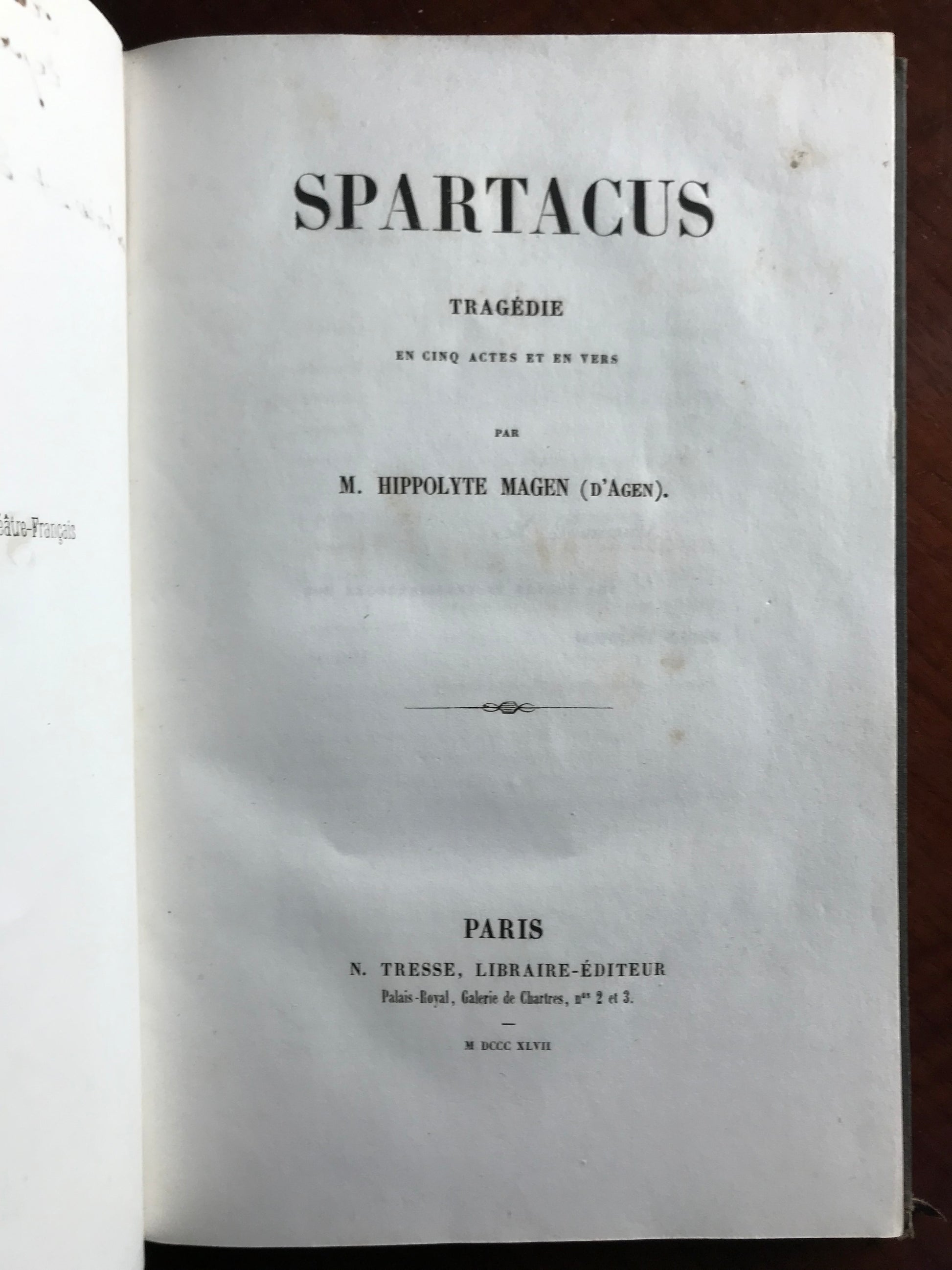 Spartacus - Hippolyte Magen (d'Agen) - Envoi autographe - Edition originale - 1847