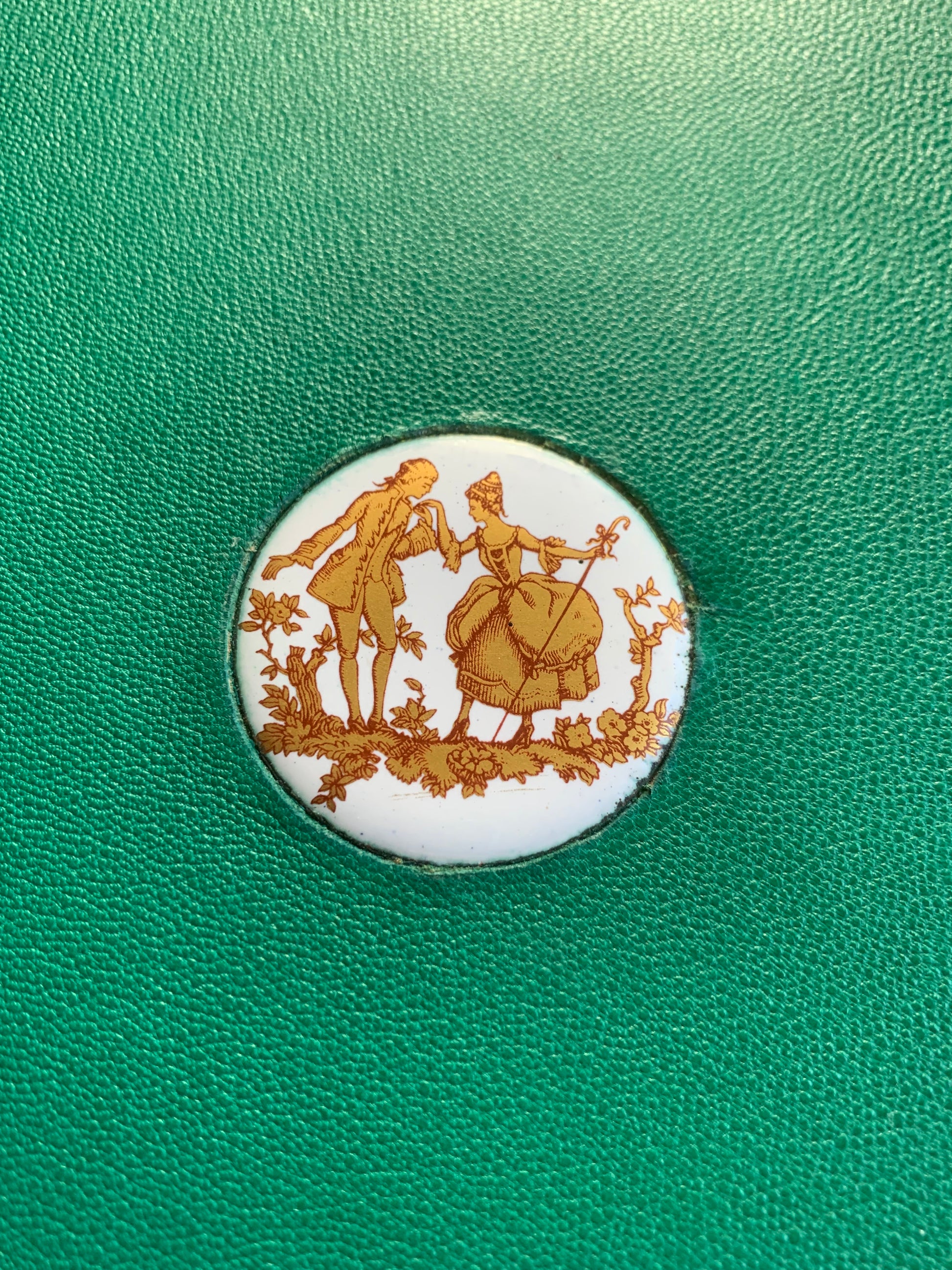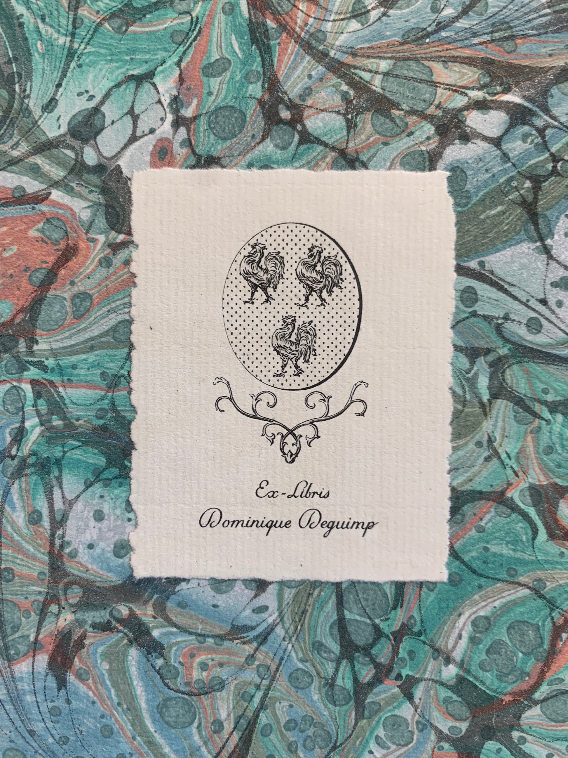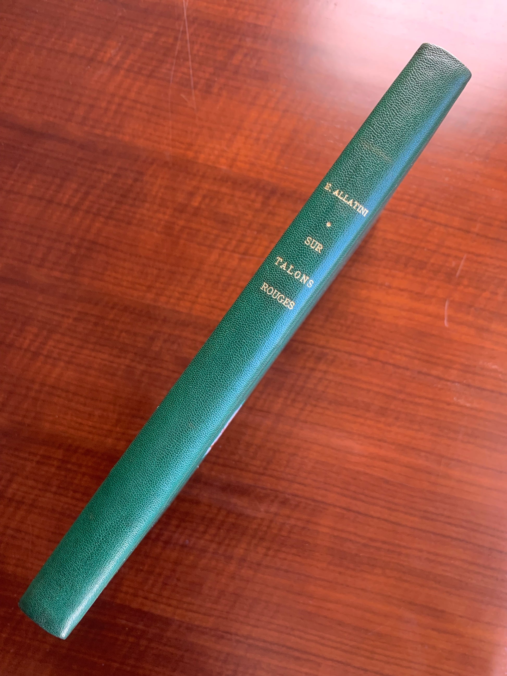 Ouvrage relié plein chagrin vert et premier plat orné d'un cabochon blanc et personnages dorés, dos lisse et titre doré, tranches supérieure dorée. Reliure signée Dominique Deguimp et ex-libris de Dominique Deguimp.