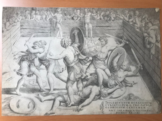 Bataille des Horaces et des Curiaces - Gravure d'Antonio Salamanca d'après Giulio Romano - 1541