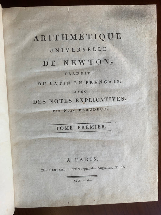 Arithmétique universelle de Newton - Noel Beaudeux - 1802