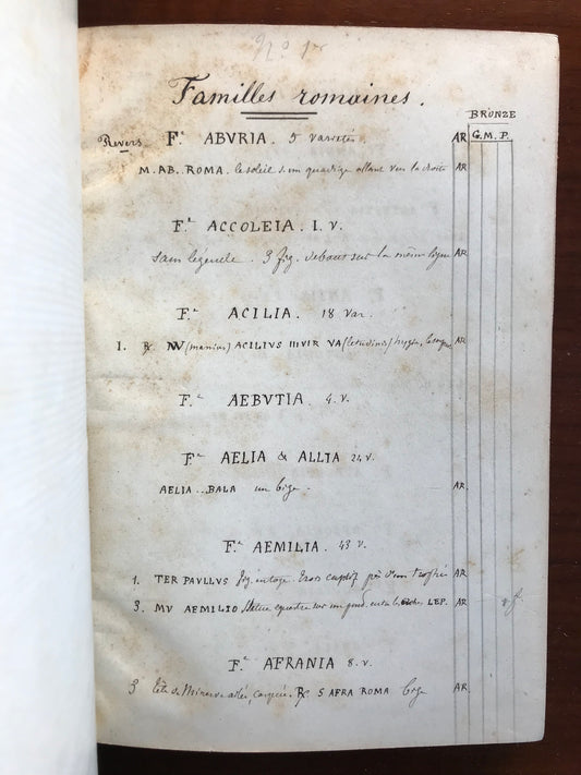 Catalogue de médailles - Familles romaines et Médailles Impériales - Manuscrit - XIXe