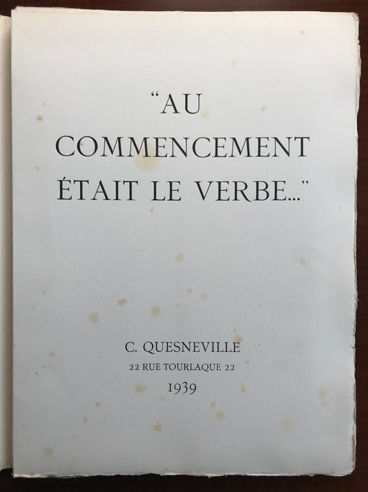 Au commencement était le verbe - Camille Quesneville - Envoi autographe - Edition originale - 1939